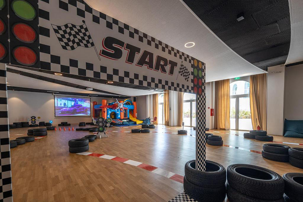 vonkajší sladkovodný bazén, vonkajší bazén na pláži so slanou vodou, dva menšie sladkovodné detské bazény s atrakciami, ležadlá a slnečníky pri bazéne (v obmedzenom množstve), vnútorný bazén, Wellness & Spa* / vnútorný bazén, fínska sauna, turecká sauna, masáže*, multifunkčné ihrisko, vodné športy*, ležadlá a slnečníky na pláži*, animačný program pre deti / detský klub, diskotéka, automobilová aréna, miestnosť s videohrami, kino, stráženie detí do 3 rokov
