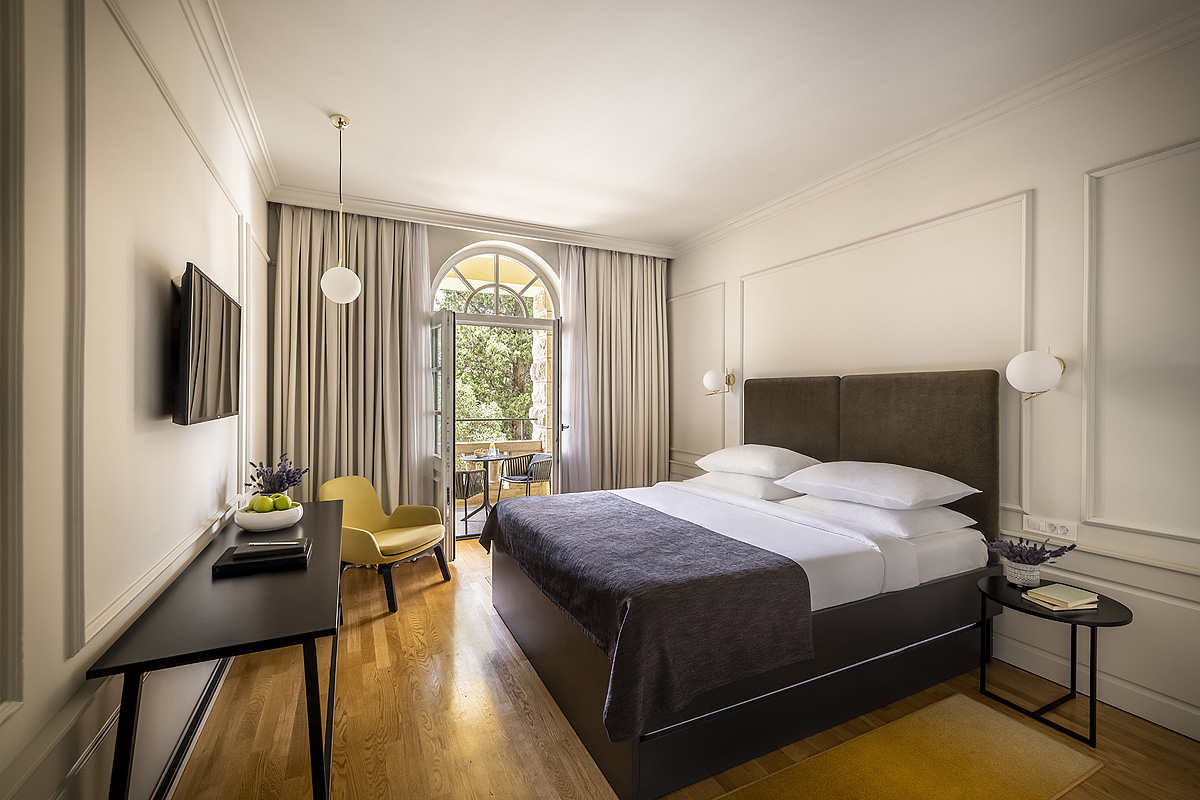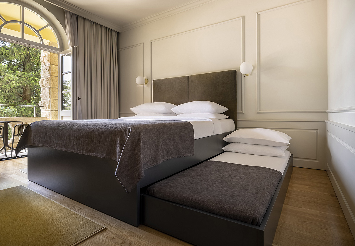 izba s manželskou posteľou a prístelkou formou výsuvného lôžka pre dieťa do nedovŕšených 15 rokov, sociálne zariadenie so sprchou či vaňou, orientovaná na park