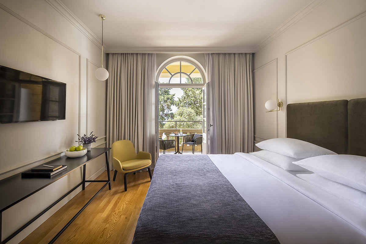 izba s manželskou posteľou a výsuvnou prístelkou pre dieťa do nedovŕšených 15 rokov, sociálne zariadenie so sprchou či vaňou, balkón orientovaný na park