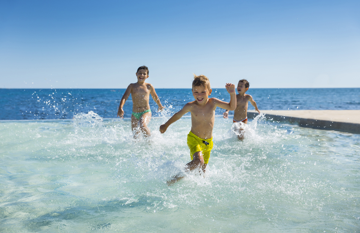 vonkajšie (s morskou vodou) aj vnútorné bazény (poloolympijský bazén), detský vonkajší bazén, vírivka, ležadlá a slnečníky pri bazéne (v obmedzenom množstve), fínska a bio sauna*, posilňovňa, plážové osušky, wellness centrum* o rozlohe 2500 m², kozmetický salón*, masáže*, plážový volejbal*, tenisový kurt* s požičovňou vybavenia*, stolný tenis*, požičovňa bicyklov vrátane servisu*, minigolf*, paintball*, vodné športy*, ihrisko na padel, futbalové ihrisko, Aquapark Istralandia – 4 km (vstupenky k dispozícii na recepcii hotelu)