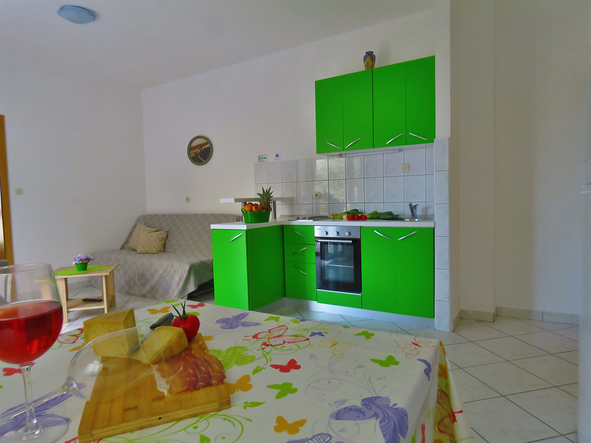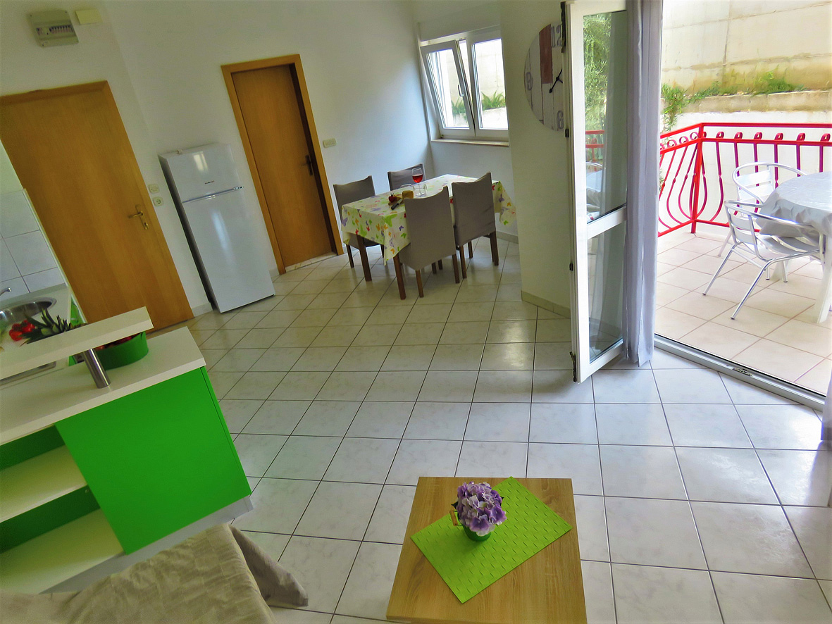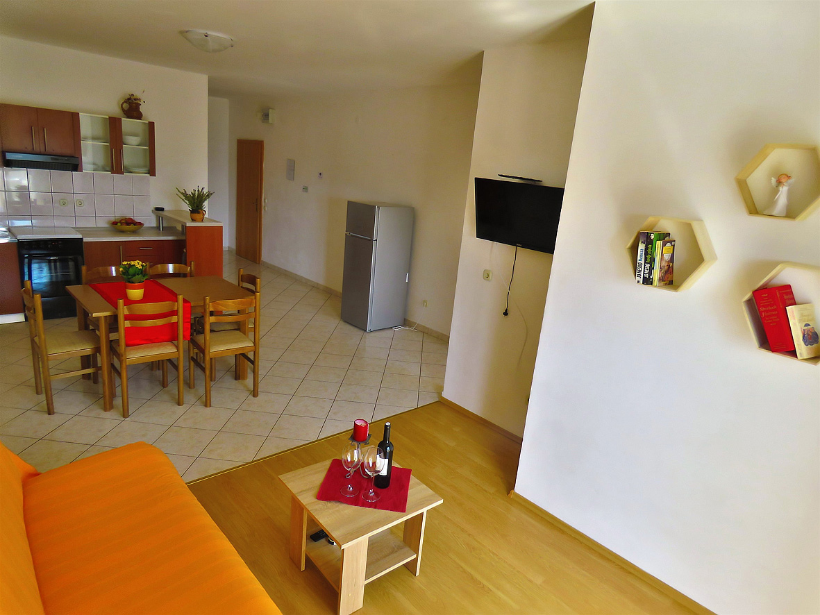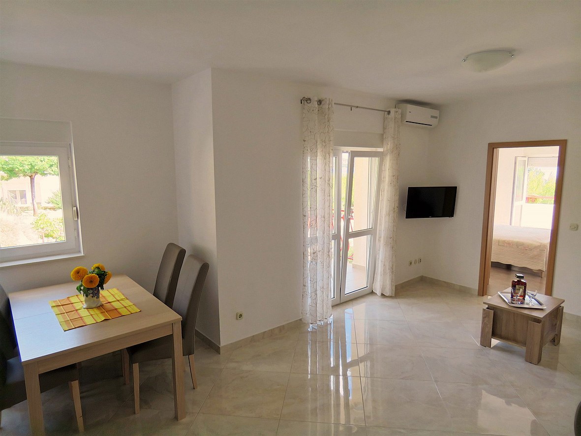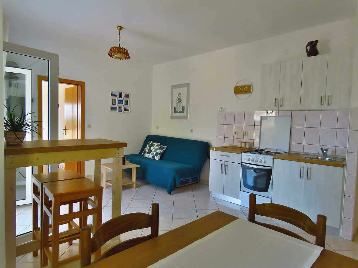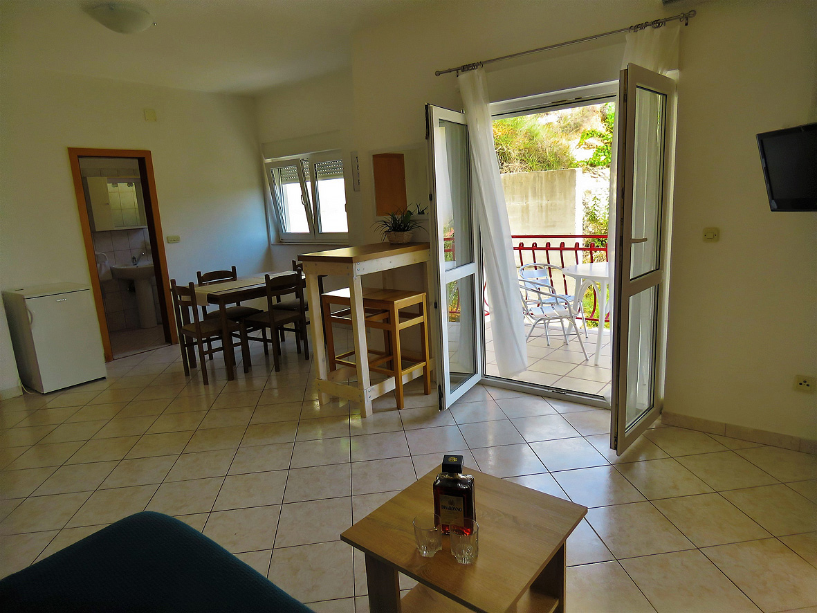 trilo 4+2 - 2x izba s manželskou posteľou, obývacia izba a rozkladací gauč pre 2 deti do nedovŕšených 15 rokov, kuchynský kút, 2 x sociálne zariadenie so sprchou, 2x balkón, jeden s výhľadom na more