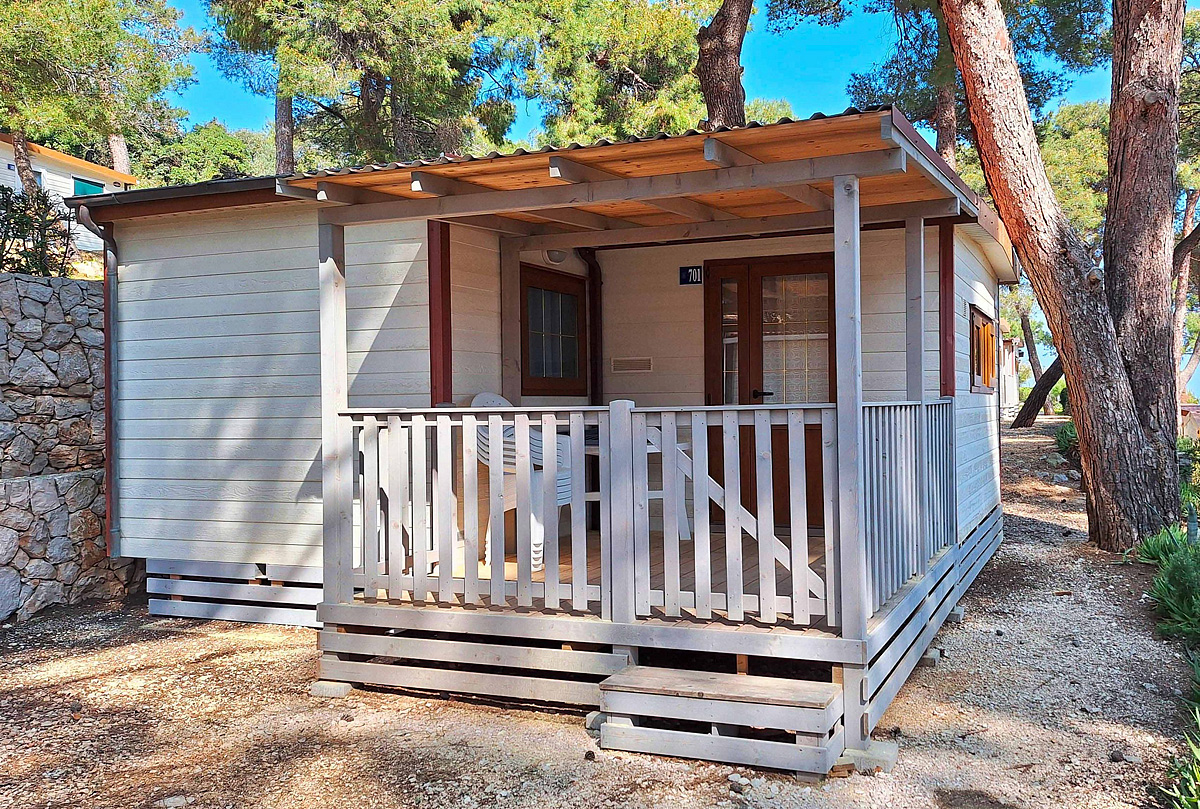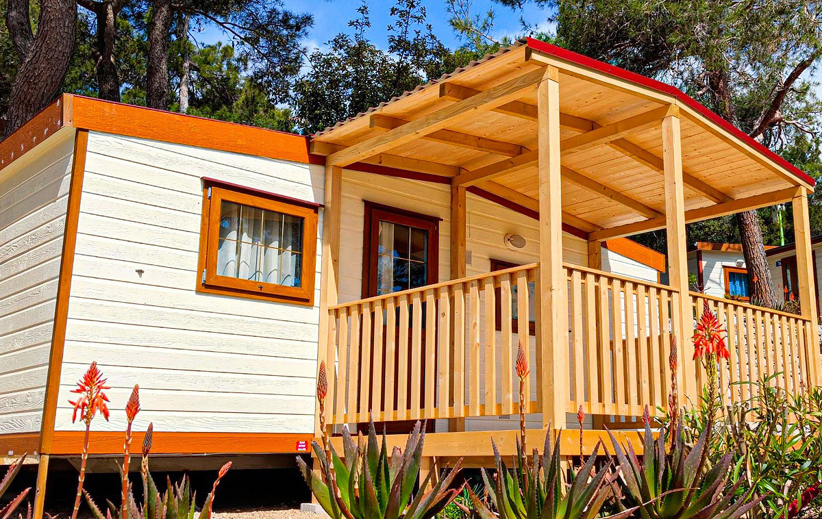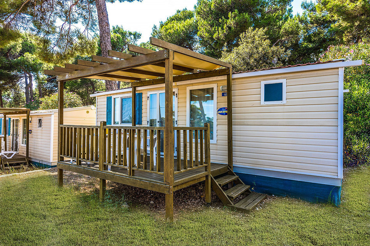 MH Superior 4+1 - 32 m² - 1 spálňa s manželskou posteľou, 1 spálňa s 2 samostatnými lôžkami, obývacia izba s kuchynským kútom a lavicou rozložiteľnou na lôžko, 2x sociálne zariadenie so sprchou, terasa so záhradným nábytkom; maximálna obsadenosť je 4 dospelí a 1 dieťa do nedovŕšených 12 rokov