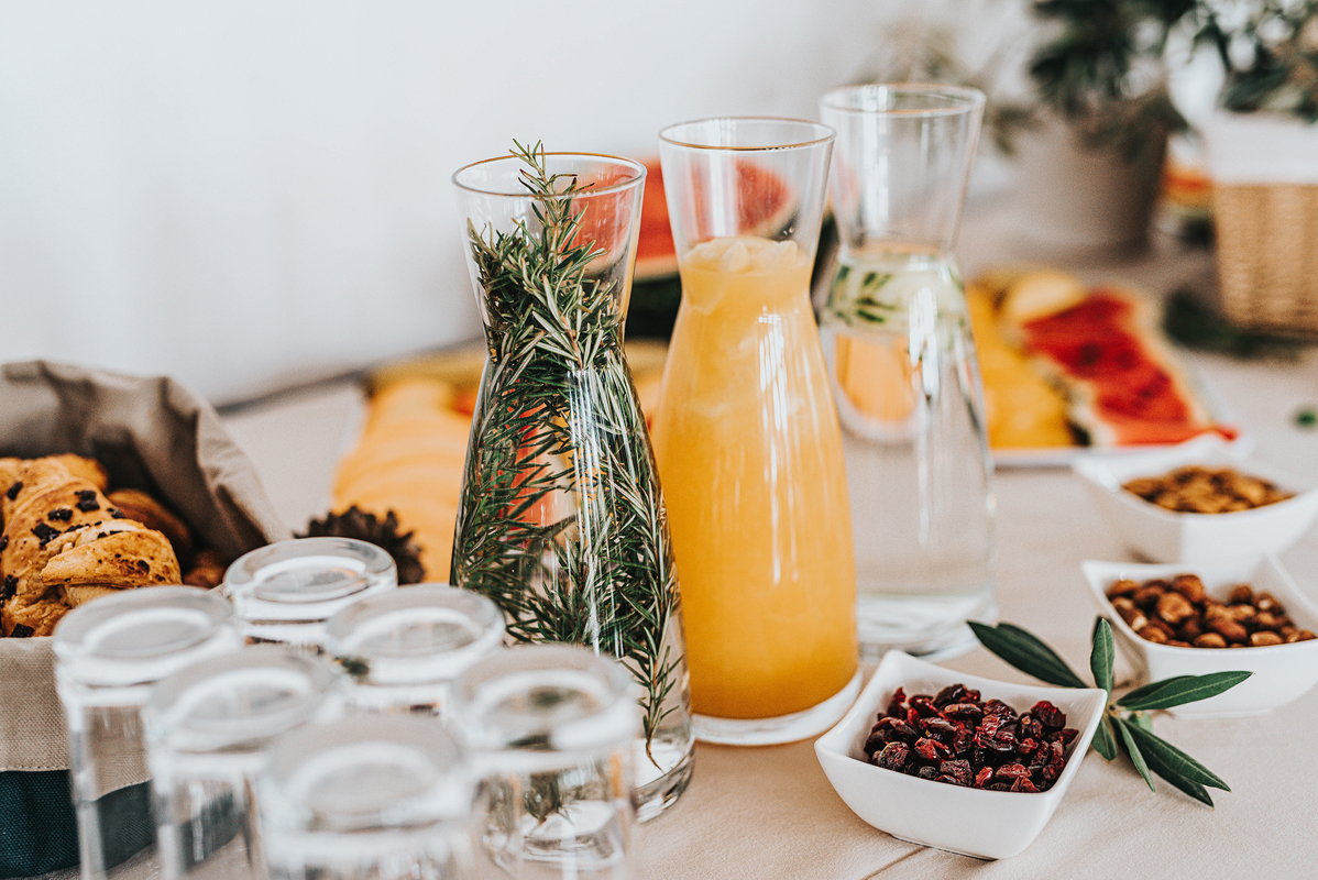 formou bufetu, nápoje zahrnuté v cene – voda, minerálna voda, džúsy, čapované miestne biele a červené víno, čapované miestne pivo