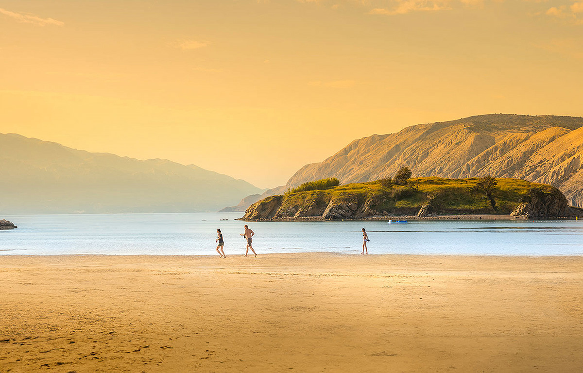 Ostrov Rab, lokalita Lopar, pláž / piesočná – 50 až 200 m (záleží na umiestnení MH), letisko Rijeka – 120 km, Zadar – 150 Km