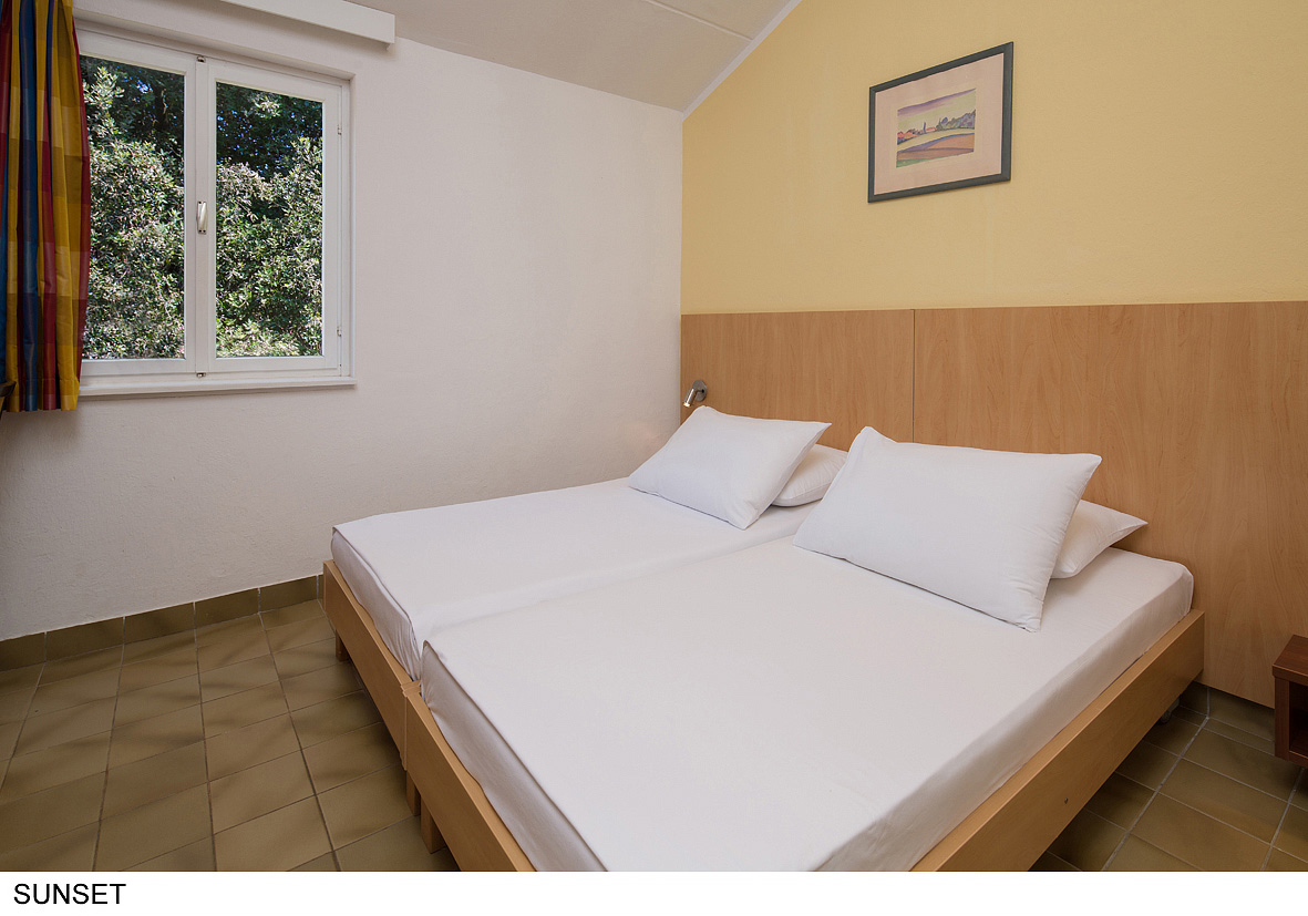 44 m² - 1 spálňa s manželskou posteľou či 2 samostatnými lôžkami, obývacia izba s kuchynským kútom a rozkladacím gaučom pre 2 osoby, sociálne zariadenie so sprchou, balkón (spravidla orientovaný na more); bilo 4 Sunset - rovnaká dispozícia ako typ A, je však komfortnejšie zariadený a umiestnený bližšie k moru