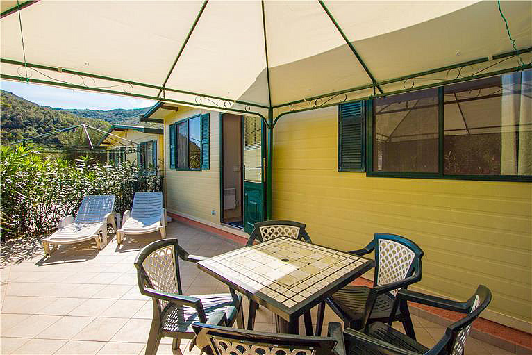 1 spálňa s manželskou posteľou (140 x 190 cm), 1 spálňa s 2 samostatnými lôžkami (70 x 180 cm), obývacia izba s kuchynským kútom a lavicou prestaviteľnou na lôžko pre dieťa do nedovŕšených 7 rokov, sociálne zariadenie so sprchou, terasa