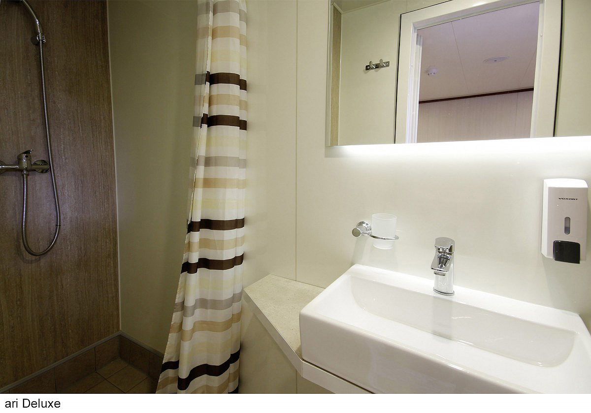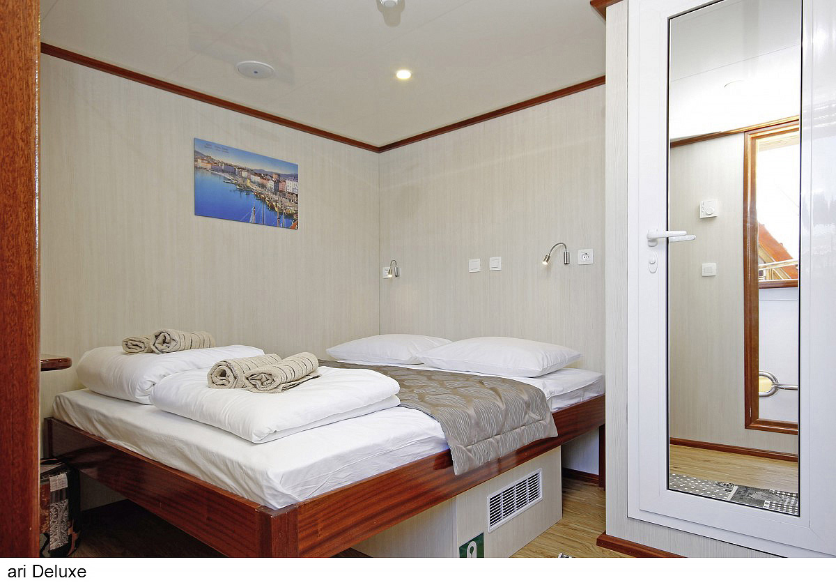Deluxe 2 - kajuta s dvomi oddelenými lôžkami alebo manželskou posteľou, vlastné sociálne zariadenie so sprchou a WC, popis platný i pre Deluxe 1