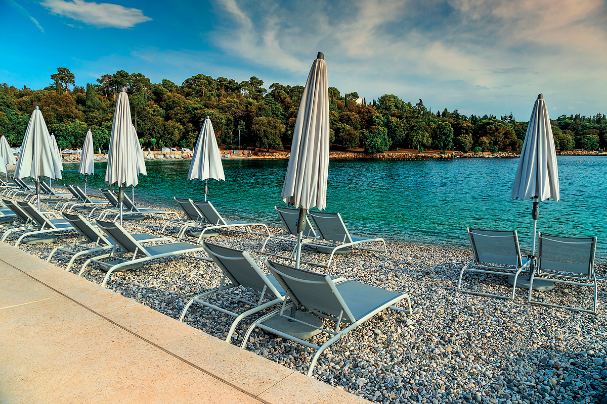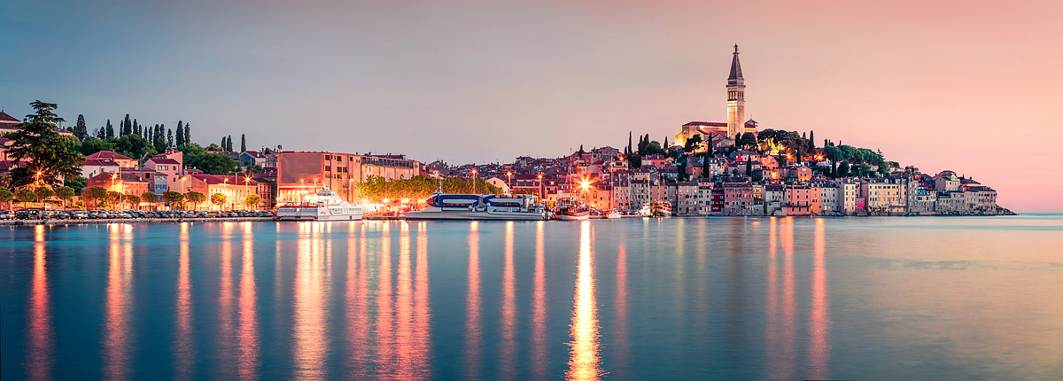 Rovinj je hlavným architektonickým klenotom benátskej epochy na Istrii. Toto kúzelné mestečko rozložené na polostrove si celkom zachovalo svoj pôvodný ráz a radí sa medzi najmalebnejšie miesta v celom Chorvátsku. Hotely vyrastajú na sever aj na juh od Rovinju. Pláže, pozdĺž ktorých vedie promenáda, sú čiastočne doplnené betónovými plošinami, inak tu nájdeme okruhliaky, kamene, miestami aj navezený piesok.