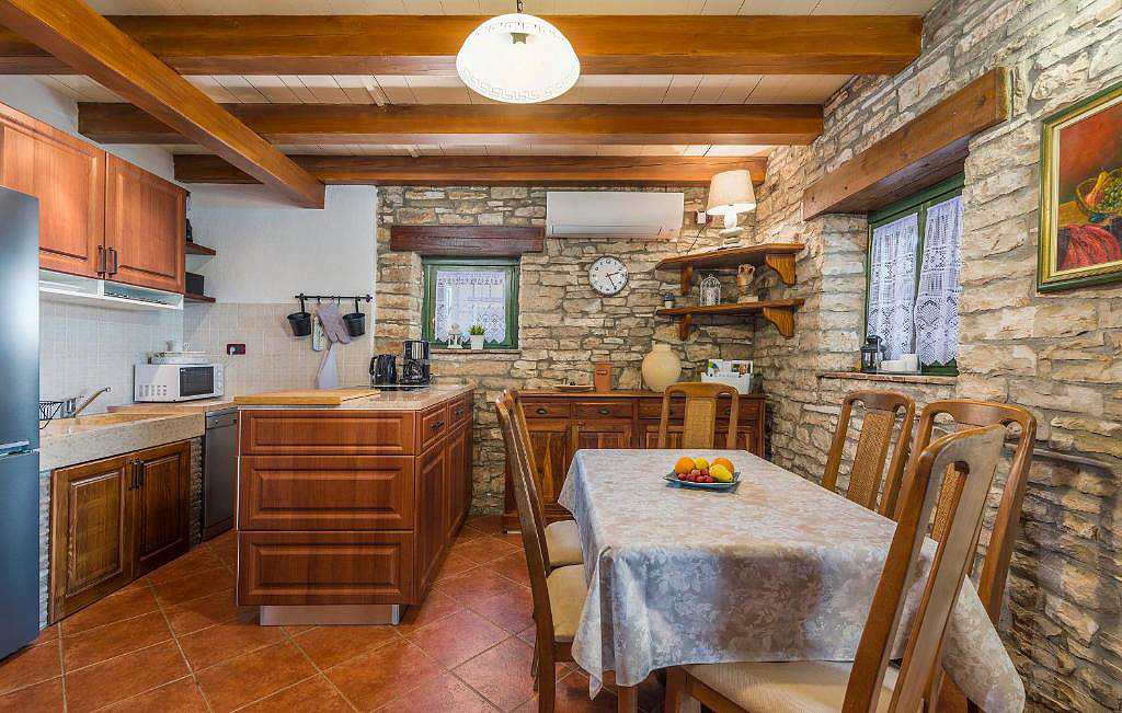 Villa Ana Rita je elegantný kamenný dom s kapacitou až pre 6 osôb, zasadený do pokojného prostredia istrijského vidieka. Ponúka dve spálne, plne vybavenú kuchyňu, klimatizáciu, priestrannú obývaciu izbu a terasu s výhľadom na prírodu. Hostia si môžu užívať súkromný vyhrievaný bazén, vírivku, vonkajšiu sprchu, gril, stolný tenis a bicykle zdarma. Dom je ideálnou voľbou pre rodiny aj páry, ktoré hľadajú kombináciu pohodlia, súkromia a blízkosti k moru aj mestu Rovinj. Záhrada s rozlohou 500 m² poskytuje dostatok priestoru na relax aj zábavu.