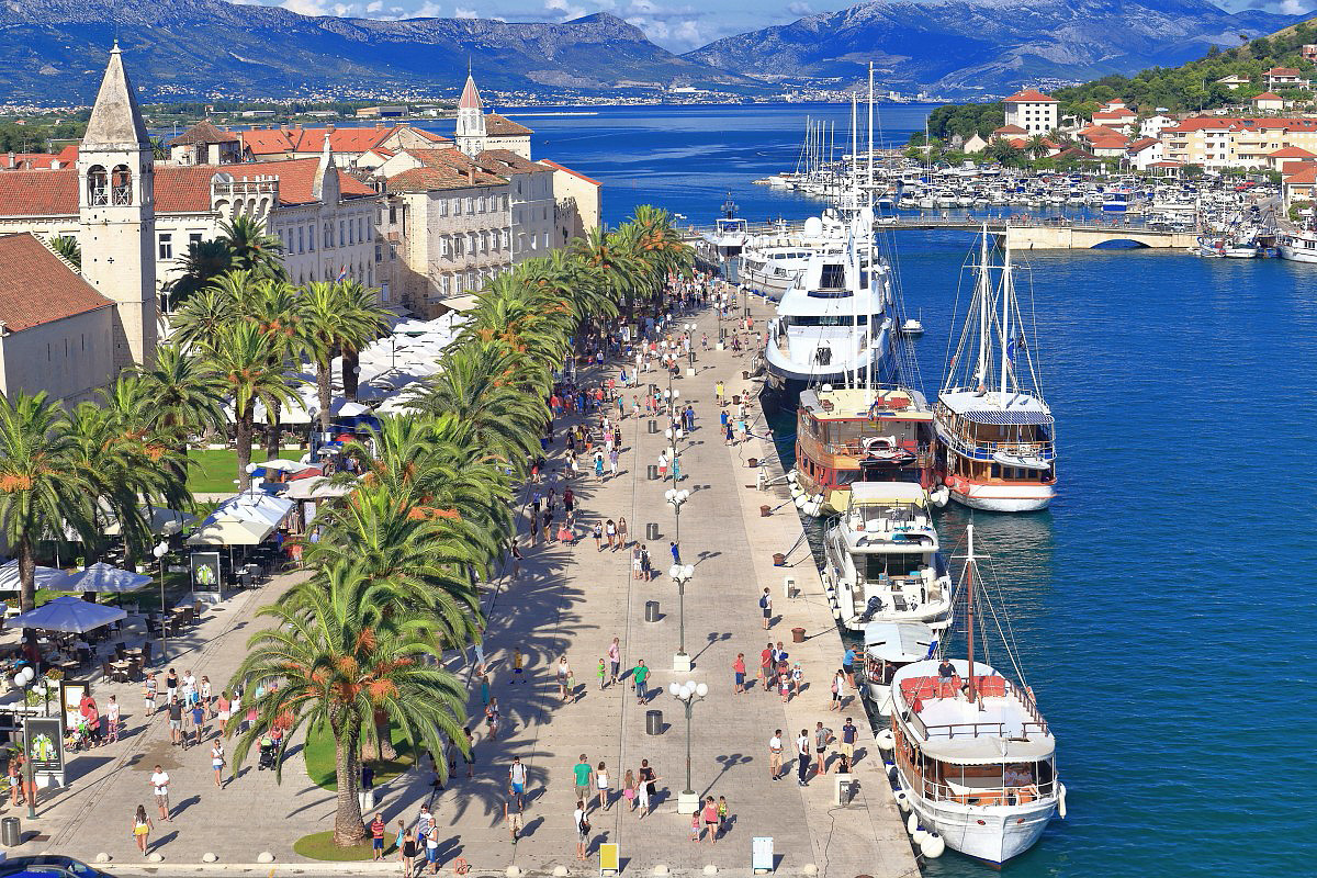 Medzi 13:00 a 14:00 nalodenie v prístave Trogir. Možnosť parkovania (za poplatok), prevoz batožiny k lodi. Následuje stretnutie so sprievodcom vrátane welcome drinku, zoznámenie sa s posádkou a svojimi spolucestujúcimi. Po ubytovaní vypláva loď do zátoky na ostrove Čiovo, kde máme možnosť užiť si prvé kúpanie v krišťálovo čistých vodách Jadranu. Cieľom prvého dňa plavby je Split. Hlavnou dominantou Splitu je staré centrum mesta, ktoré bolo postavené na mieste Diokleciánovho paláca. Komplex zapísaný na zozname svetového dedičstva je domovom 1700 rokov starých rímskych hradieb, obytných budov, kostolov, kaviarní... Večer máte voľno na prechádzku starým mestom.