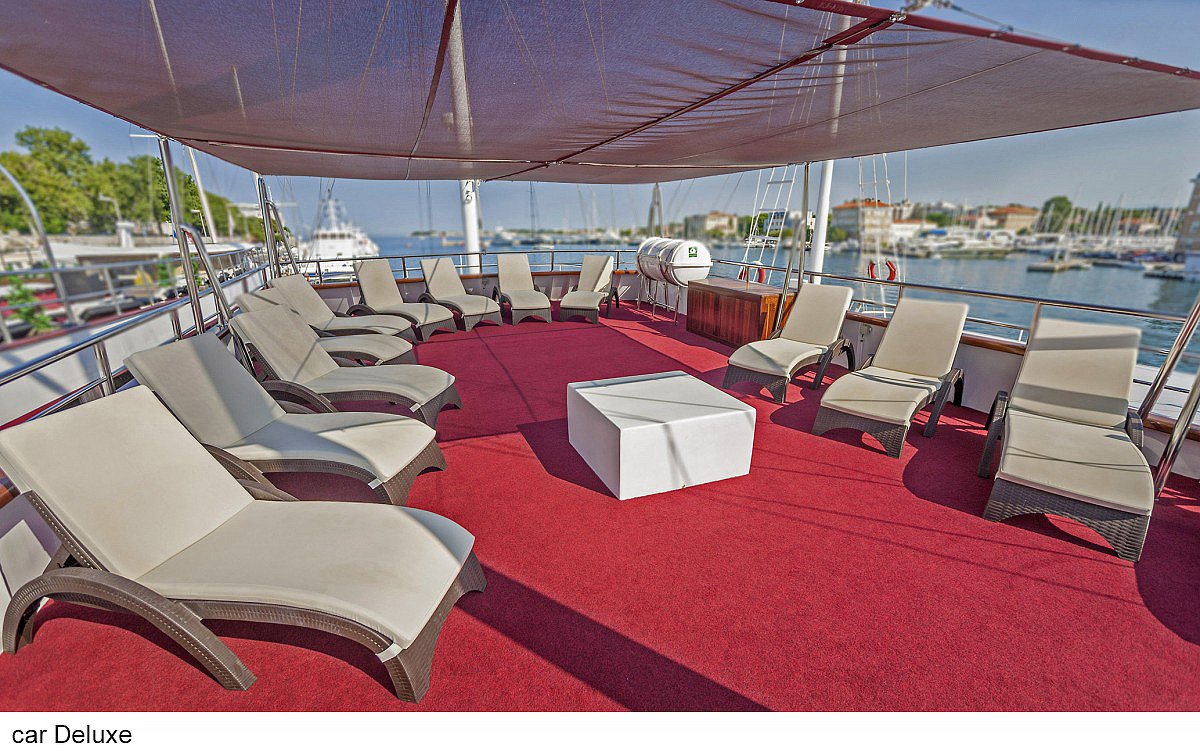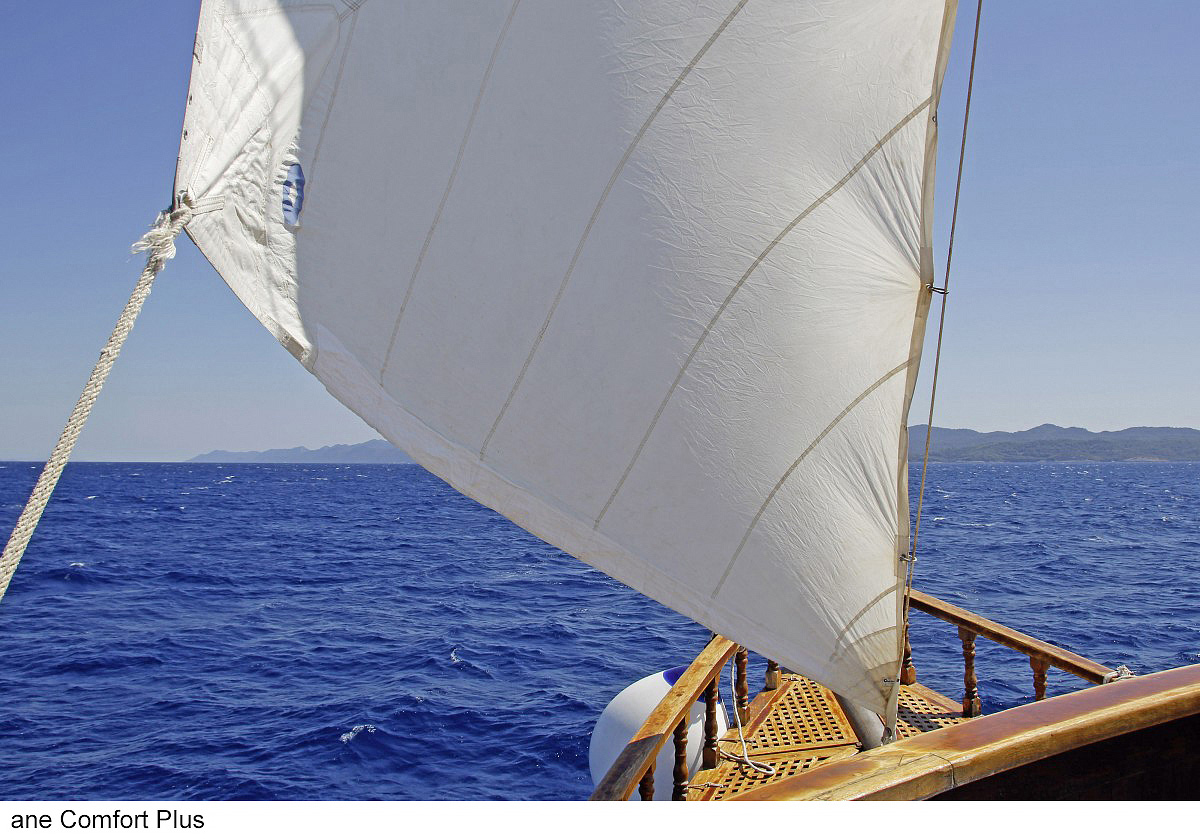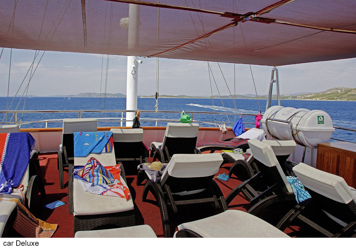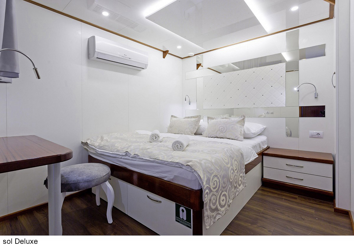 lode kategórie Comfort plus / motorové plachetnice s dreveným alebo oceľovým trupom, lode kategórie Premium / pohodlné a moderne navrhnuté motorové plachetnice a motorové jachty, väčšinou s oceľovým trupom, väčšina plavidiel má kúpaciu plošinu vzadu, lode kategórie Deluxe / luxusné motorové jachty s oceľovým trupom, krytý salónik na hornej palube a kúpacia plošina vzadu. Za príplatok je možné rezervovať kajutu na palube, len vopred a na vyžiadanie. U kategórie Comfort plus voda zo sprchy odteká do podlahovej vpusti, nejedná sa o sprchový kút a nie je oddelená závesom.