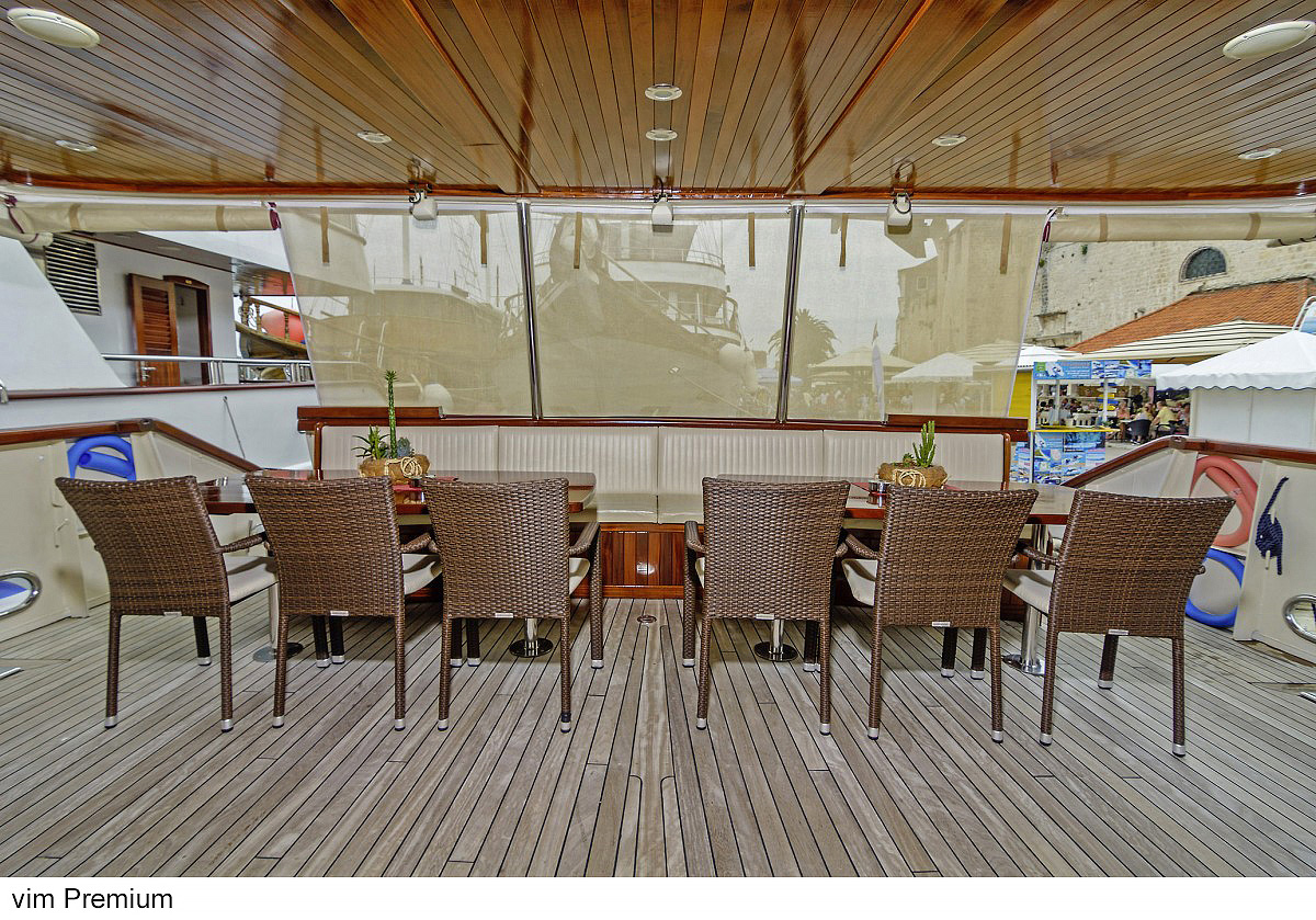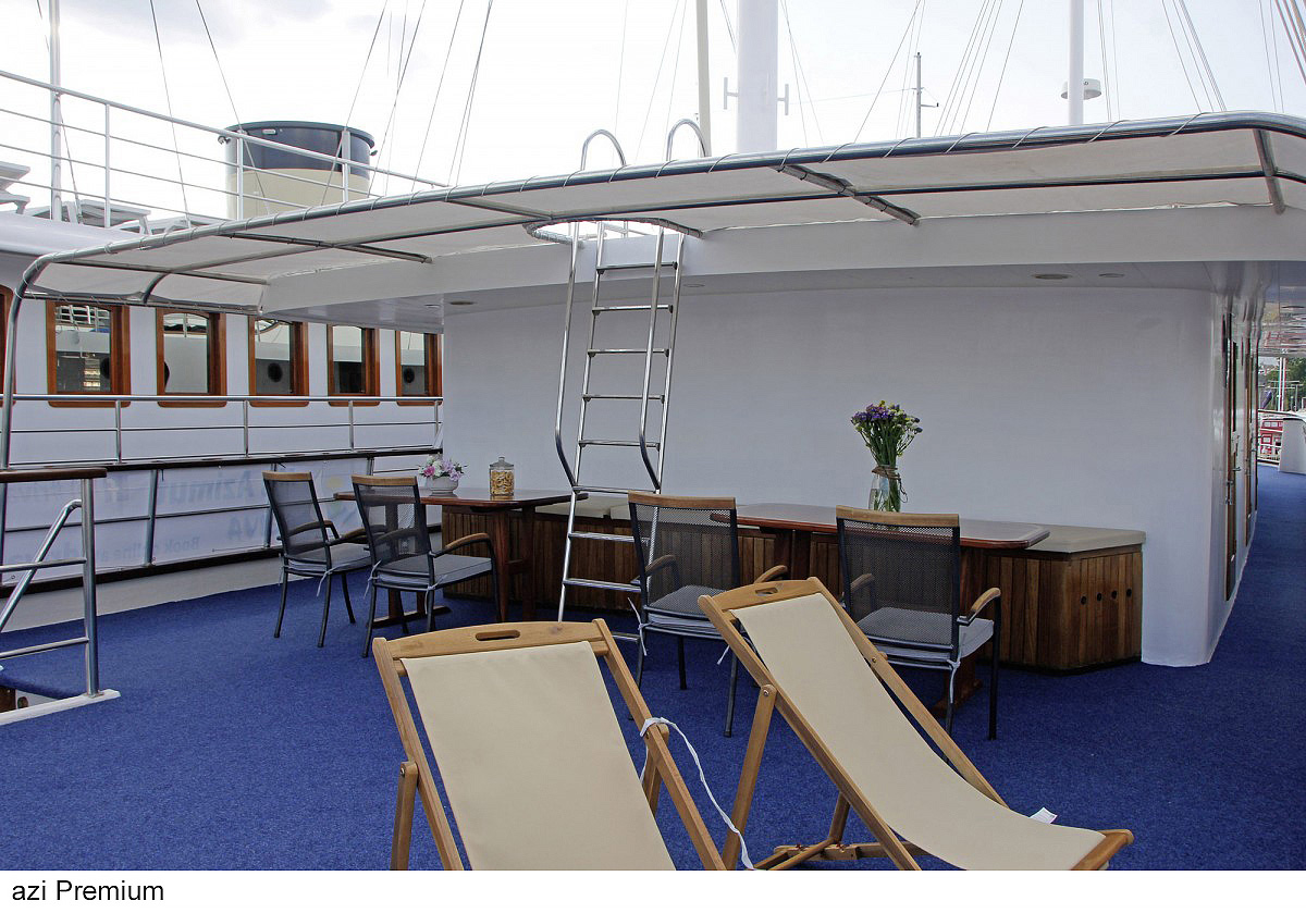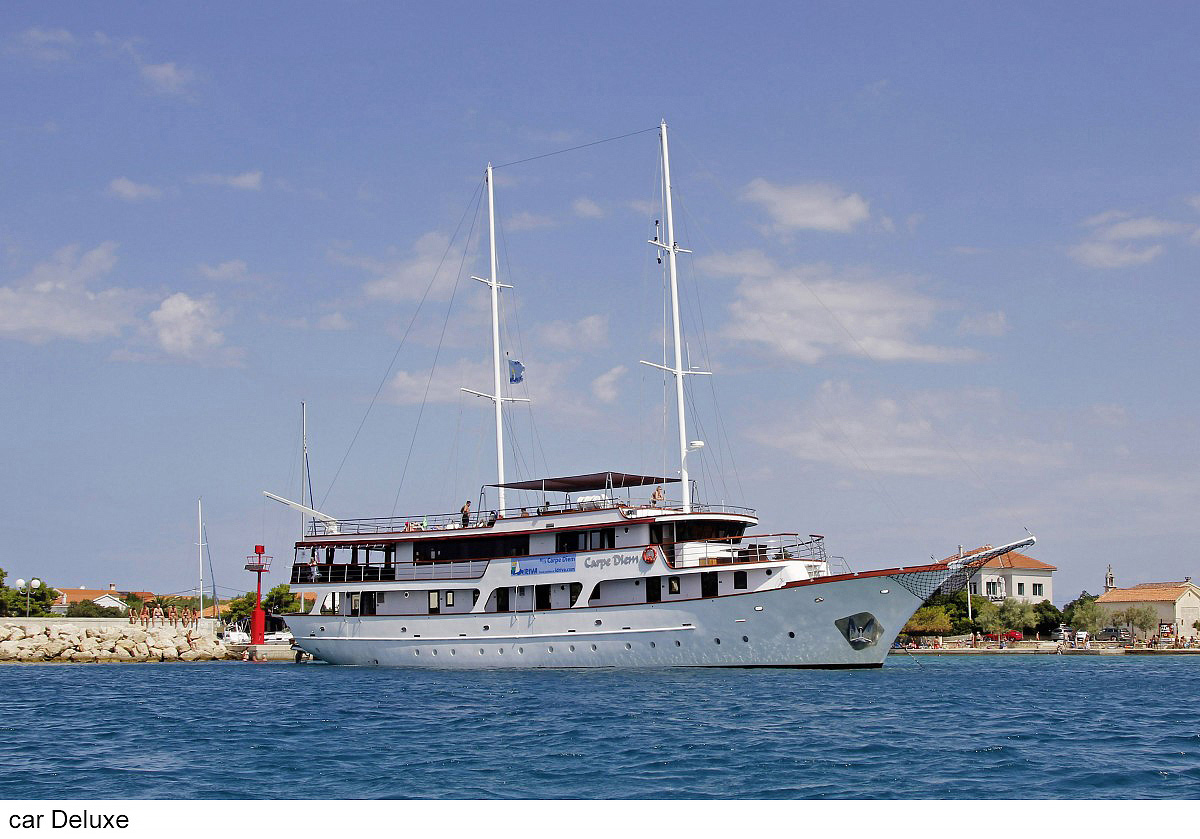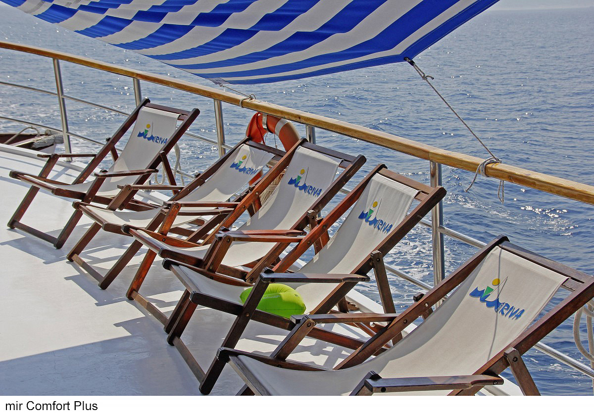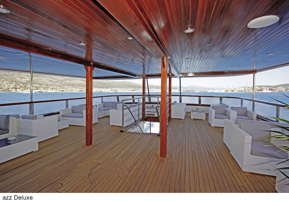 lode kategórie Comfort plus / motorové plachetnice s dreveným alebo oceľovým trupom, lode kategórie Premium / pohodlné a moderne navrhnuté motorové plachetnice a motorové jachty, väčšinou s oceľovým trupom, väčšina plavidiel má kúpaciu plošinu vzadu, lode kategórie Deluxe / luxusné motorové jachty s oceľovým trupom, krytý salónik na hornej palube a kúpacia plošina vzadu. Za príplatok je možné rezervovať kajutu na palube, len vopred a na vyžiadanie. U kategórie Comfort plus voda zo sprchy odteká do podlahovej vpusti, nejedná sa o sprchový kút a nie je oddelená závesom.