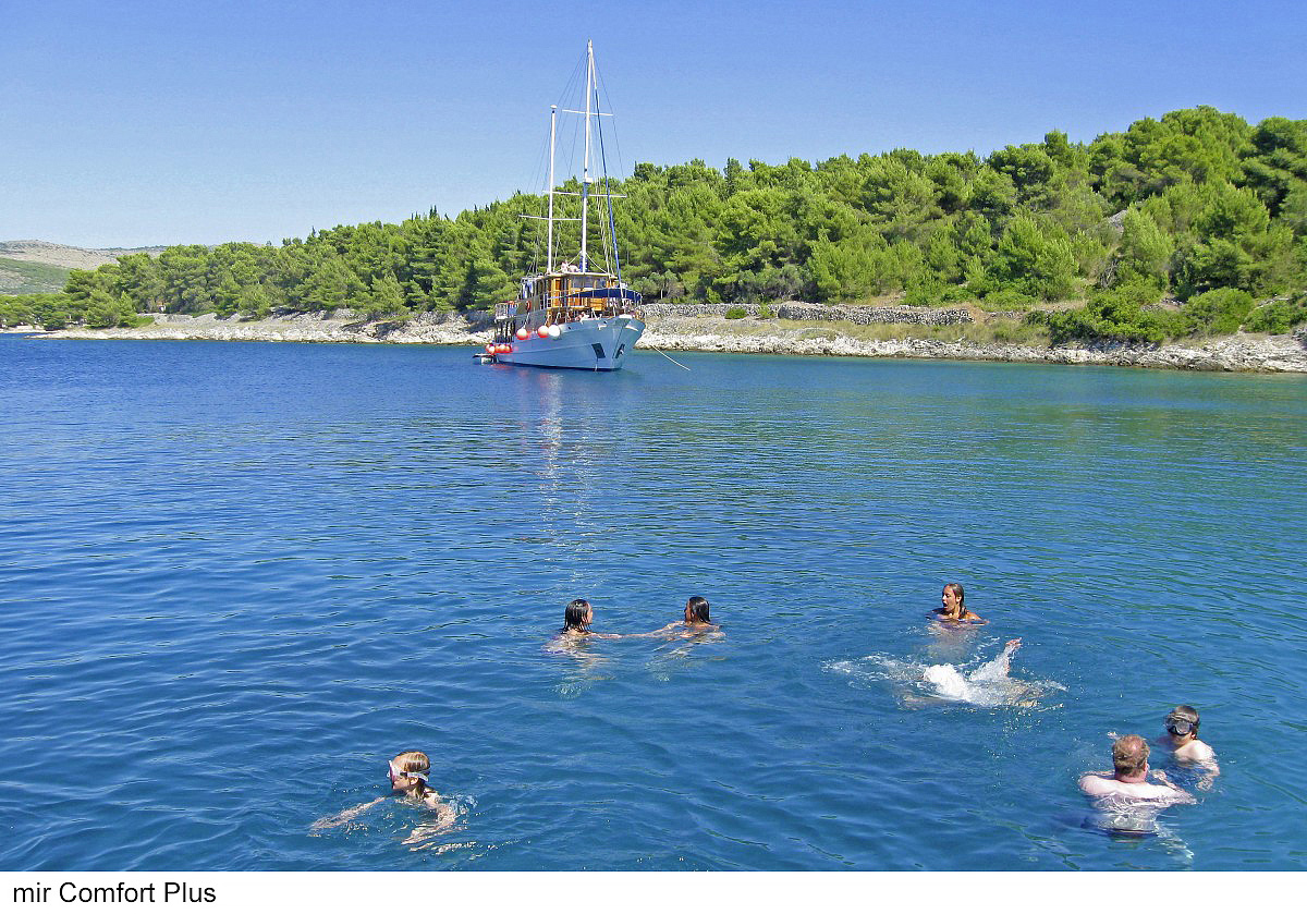 Po raňajkách sa vydáte na plavbu smerom k ostrovu Brač. Budete sa plaviť okolo hornatého poloostrova Pelješac a pred priplutím na ostrov sa okúpete v jednej z krásnych zátok. Ostrov Brač je známy vďaka svojmu bielemu vápencu. Svetoznáme budovy ako Biely dom vo Washingtone a budova Reichstagu v Berlíne sú postavené z tohoto kameňa, ktorý sa stále vyváža do zemí celého sveta. Brač je tiež známy tím, že je jedným z najväších ostrovov v celom Jadranskom mori. Prenocovanie na jednom z krásnych miest ostrova.