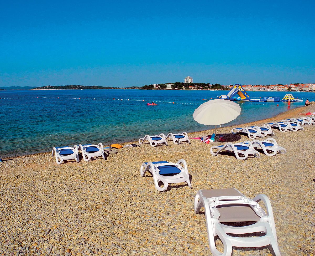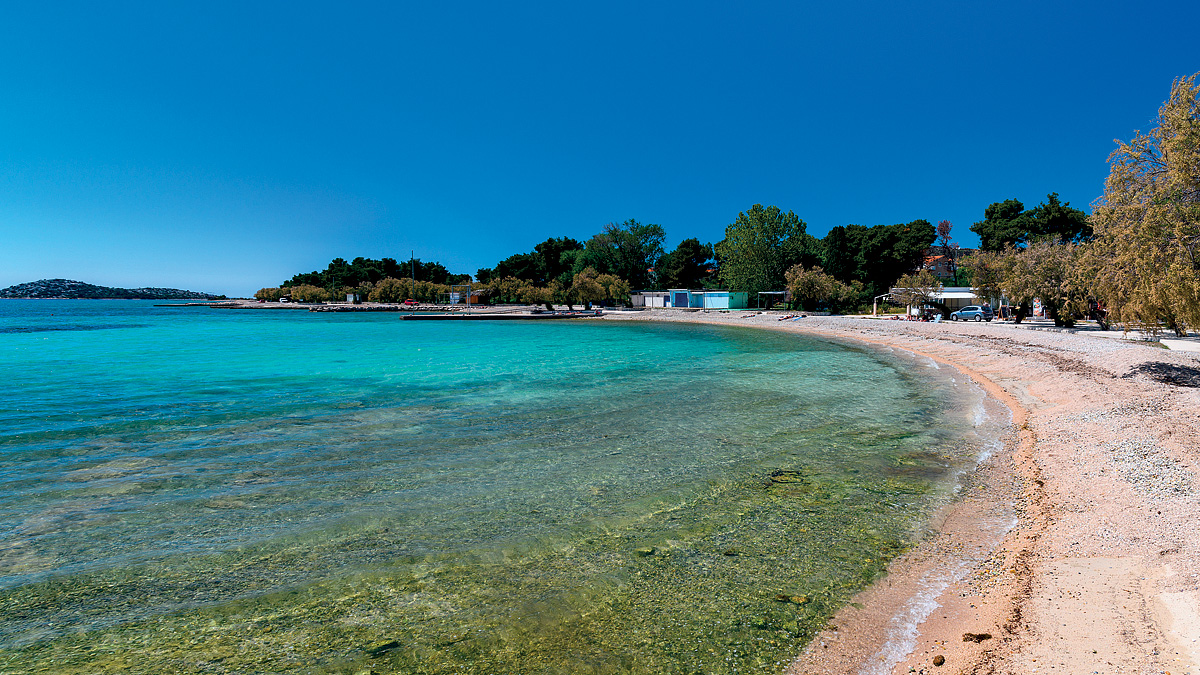 Veľmi čisté, až priezračné more s veľkým počtom ostrovov a ostrovčekov ponúka kľud a pohodu pri pohľade na svoju hlbokú modrú farbu. Pláže sú okruhliakové, miestami skalnaté či prekryté betónovými plátmi. Pozvoľný vstup do mora činí túto lokalitu vhodnou i pre deti. Medzi kameňmi sa však môžu vyskytovať morský ježkovia, preto je vhodnejšie sa vybaviť obuvou do vody. More je veľmi vhodné pre potápanie a šnorchlovanie. Na hotelových plážach je spravidla poskytovaný plážový servis.