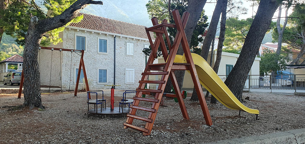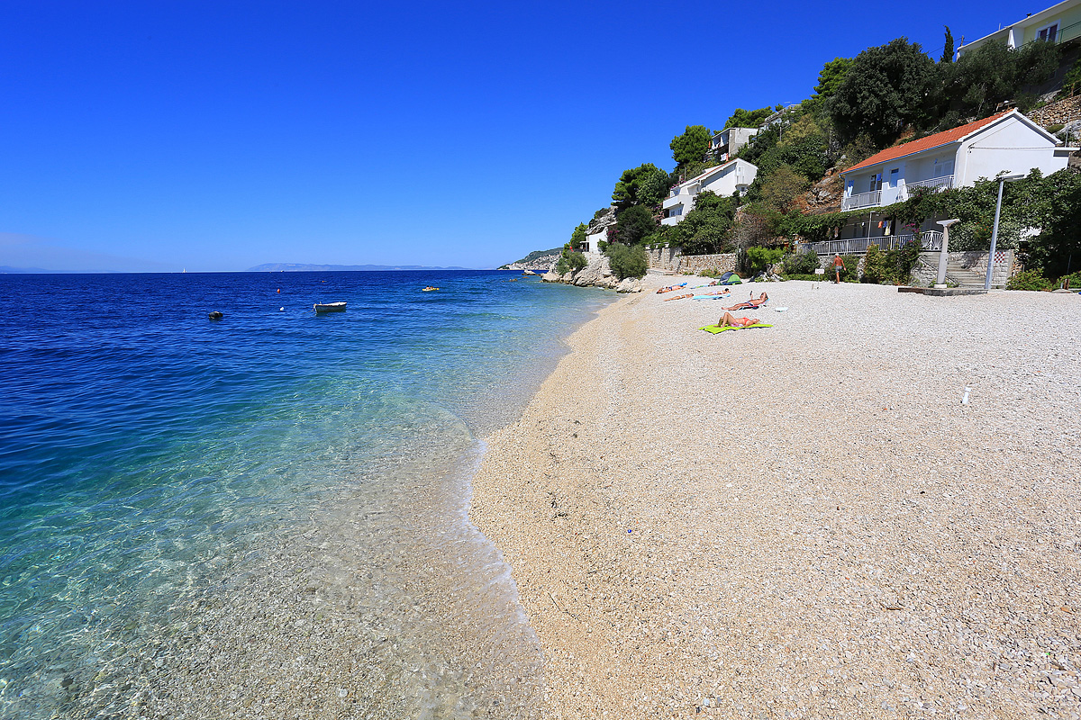 Živogošće / Mala Duba, centrum - 1 km, pláž / okruhliaková s drobnými kamienkami a veľmi pozvoľným vstupom do mora - 20 m, nudapláž - 200 m