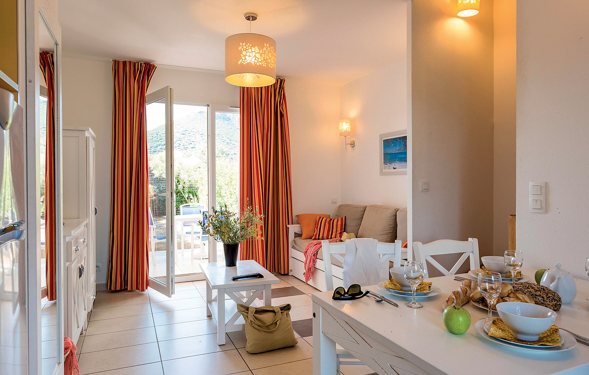 • možnosť menšieho nákupu cca 400 m od rezidencie, v blízkosti jazdy na koňoch či jazda na vodných lyžiach, väčšie nákupy až v L´lle-Rousse