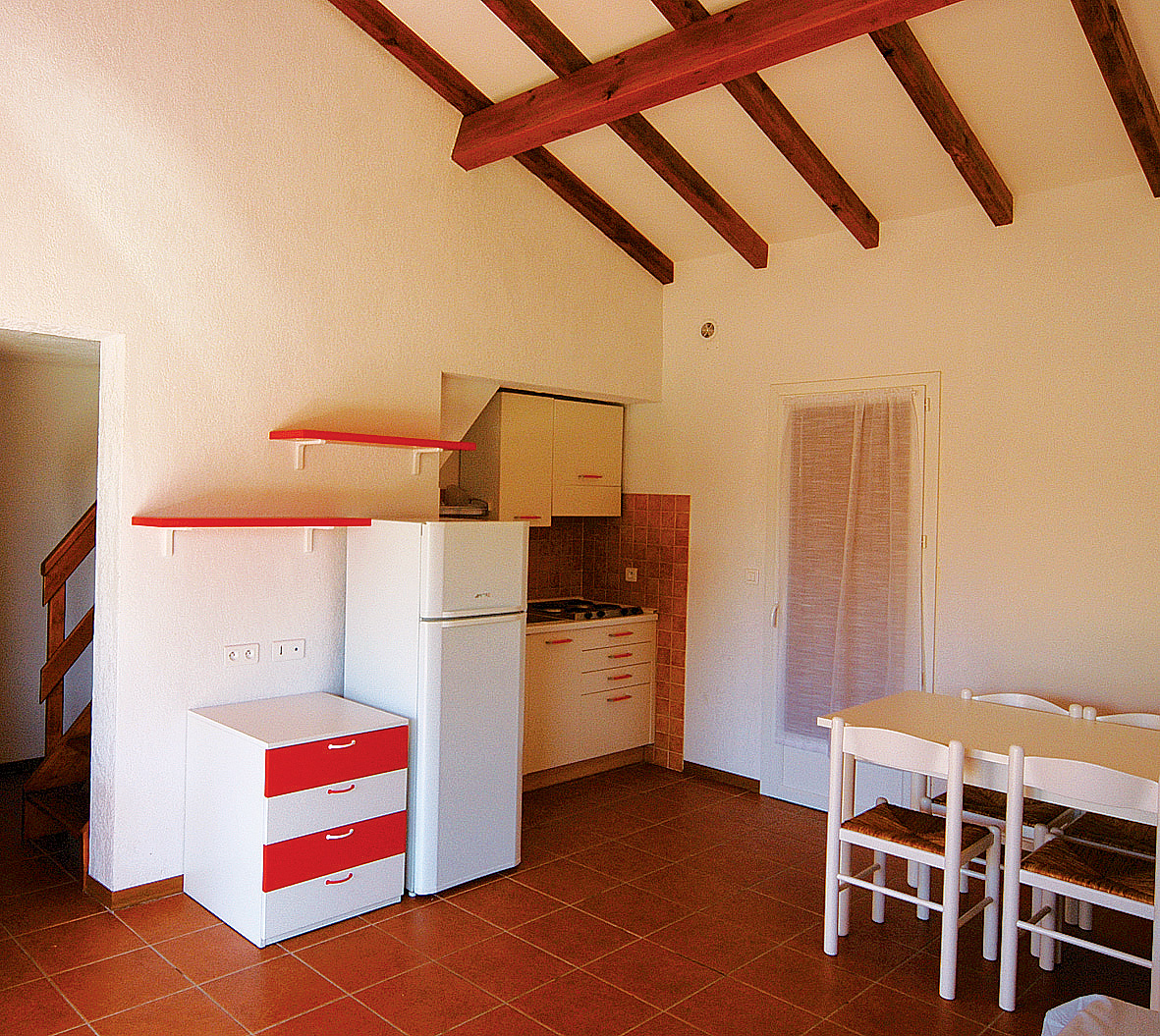 40 m² - 1 spálňa s manželskou posteľou, 1 menšia spálňa s 2 samostatnými lôžkami alebo poschodovou posteľou, obývacia izba s kuchynským kútom a rozkladacím gaučom pre 2 osoby, sociálne zariadenie so sprchou, balkón, terasa alebo predzáhradka; apartmán môže byť dvojposchodový
