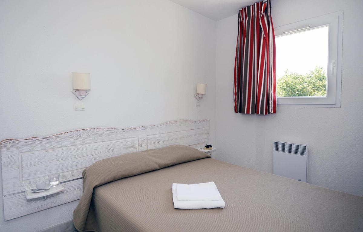 40 m² - spálňa s manželskou posteľou alebo 2 samostatnými lôžkami, spálňa s poschodovou posteľou, obývacia izba s kuchynským kútom a rozkladacím gaučom pre 2 osoby, sociálne zariadenie so sprchou alebo vaňou, balkón alebo terasa s nábytkom