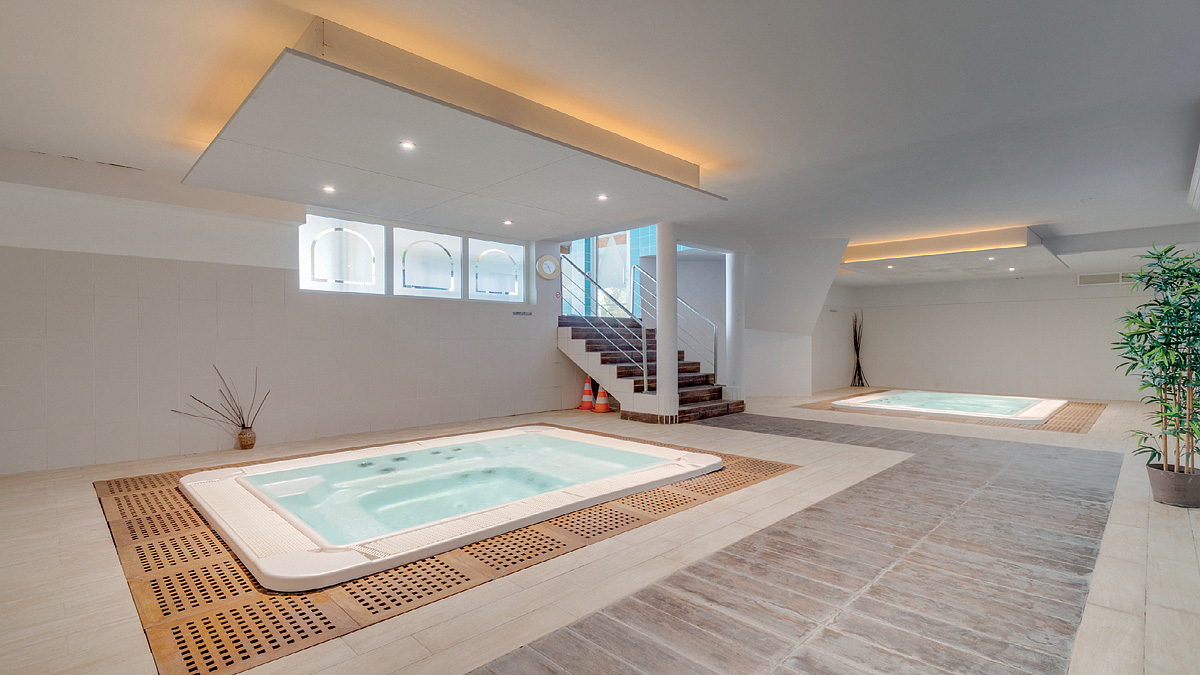 vonkajšie bazény 24 x 12 m a 20 x 10 m s vírivkou a detský vonkajší bazénik (v prevádzke od mája do septembra), lehátka, vnútorný bazén, dráha na petangue, ping pong, fitness