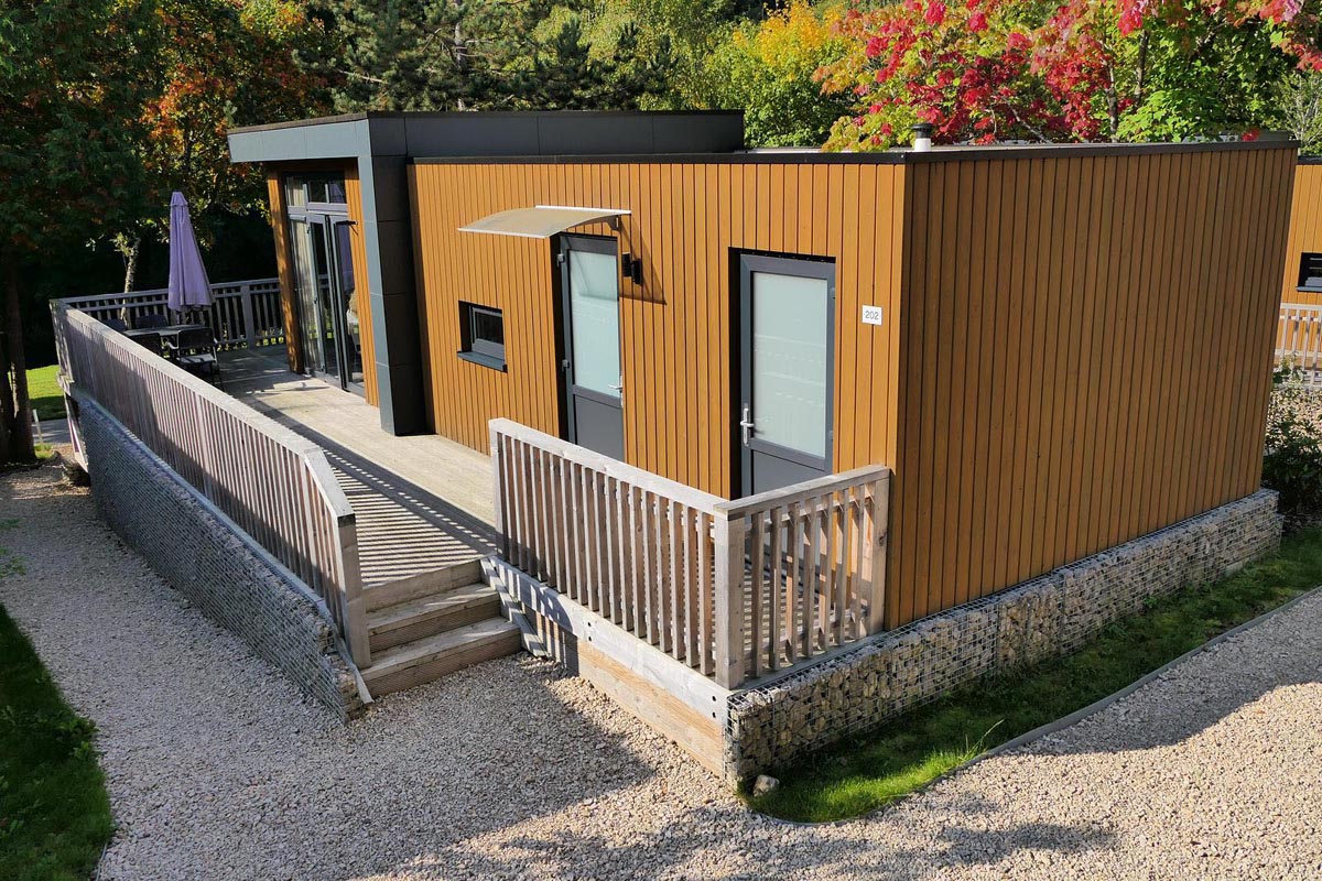 moderný bungalov, 1 spálňa s manželskou posteľou, 1 spálňa s 2 samostatnými lôžkami, obývací priestor s kuchynským kútom, sociálne zariadenie so sprchou, samostatná toaleta, vonkajšia terasa/veranda so záhradným nábytkom, max. obsaditeľnosť 4 osoby, 1 parkovacie miesto pri bungalove