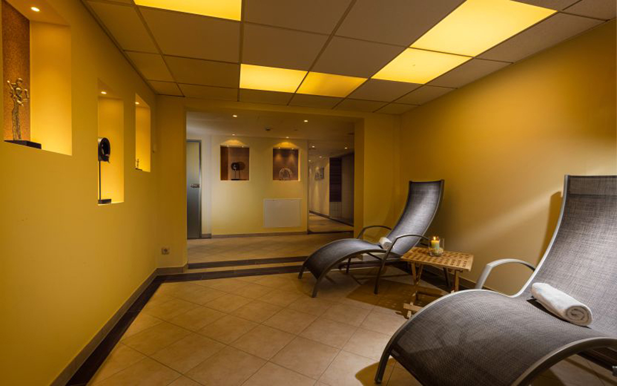 krytý bazén, vírivka, detský bazén, tobogan, fínska sauna, para, sanárium, relaxačný kútik s ležadlami, masáže* (na požiadanie), zážitkové sprchy, malá telocvičňa, požičovňa bicyklov*, biliard*, stolný tenis, minigolf*