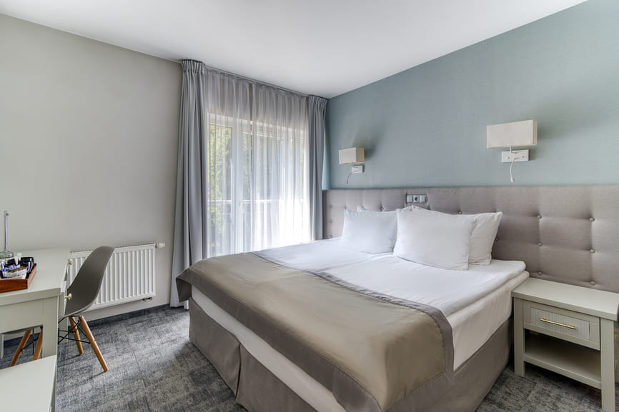 18 m² – izba s manželskou posteľou či 2 oddeliteľnými lôžkami, s možnosťou 1 prístelky, sociálne zariadenie
