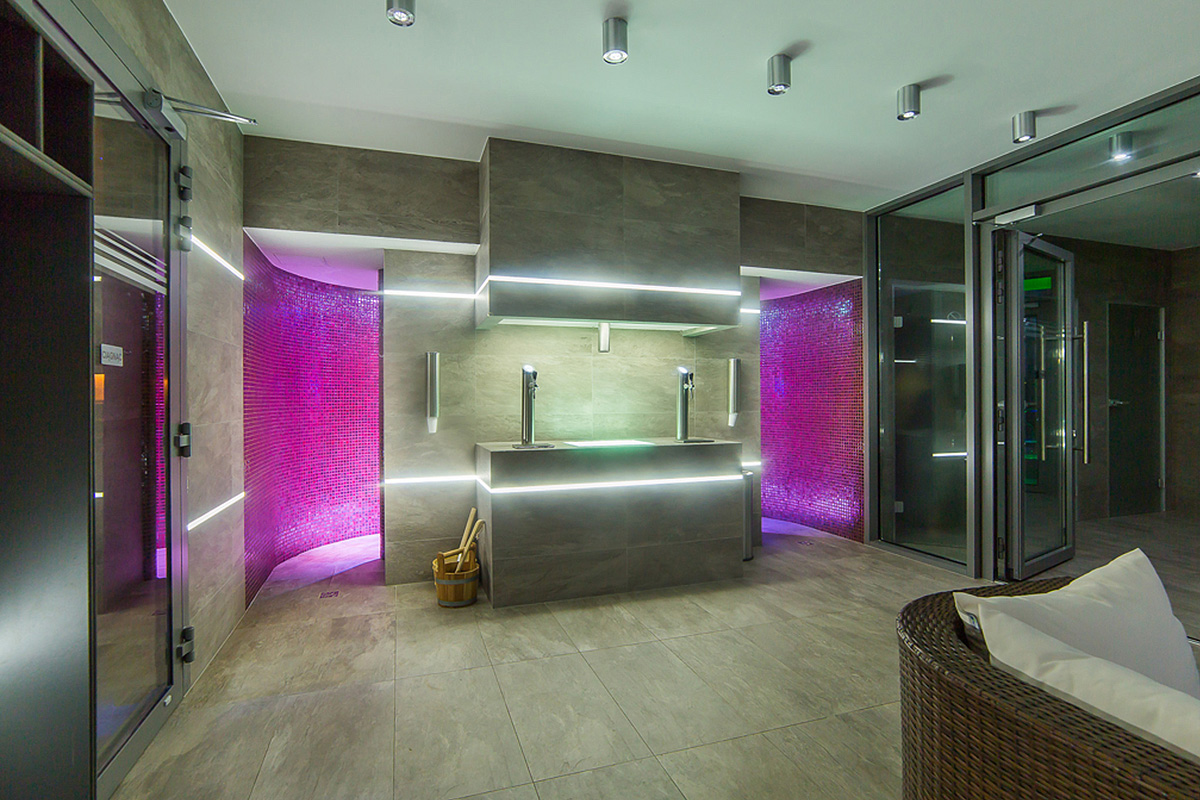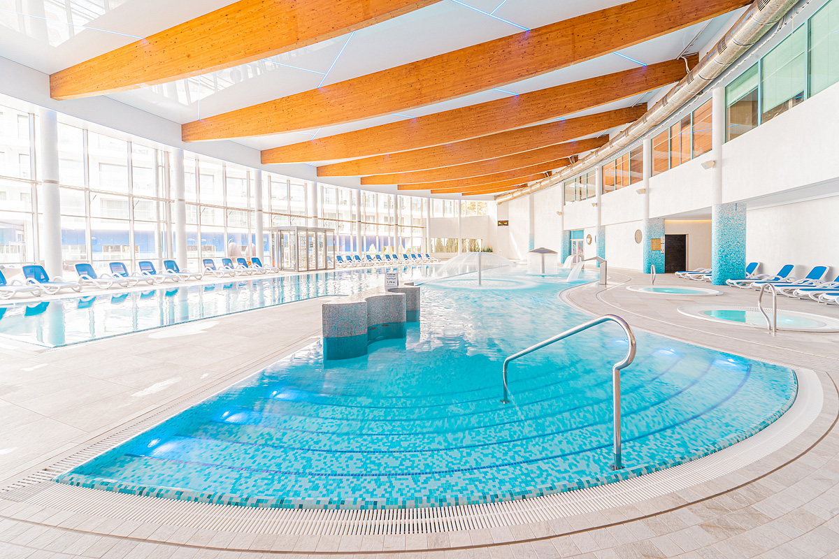 wellness s veľkosťou 1.500 m², bazén 150 m², detský bazén, para*#, sauna*#, fínska sauna*#, vírivka, soľná jaskyňa*#, infrakabína*#, masáže*, kozmetické služby*, široká ponuka liečebných a regeneračných procedúr*, relaxačný kútik s ležadlami, posilňovňa#, stolný tenis, bowling*, požičovňa bicyklov*, služby označené # môžu využívať deti až od 16 rokov