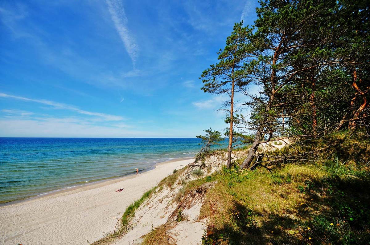 Grzybowo – centrum 700 m, pláž / piesočná s pozvoľným vstupom do mora – 400 m, cyklotrasa a pešia promenáda – 750 m, prímorská dedinka so širokou plážou Dźwirzyno – 2 km, jazero Resko Przymorskie – 2 km, Kolobrzeg – 5–8 km (maják, pobrežná promenáda, mólo, centrum), prírodná rezervácia Ekopark Wschodni – 12 km