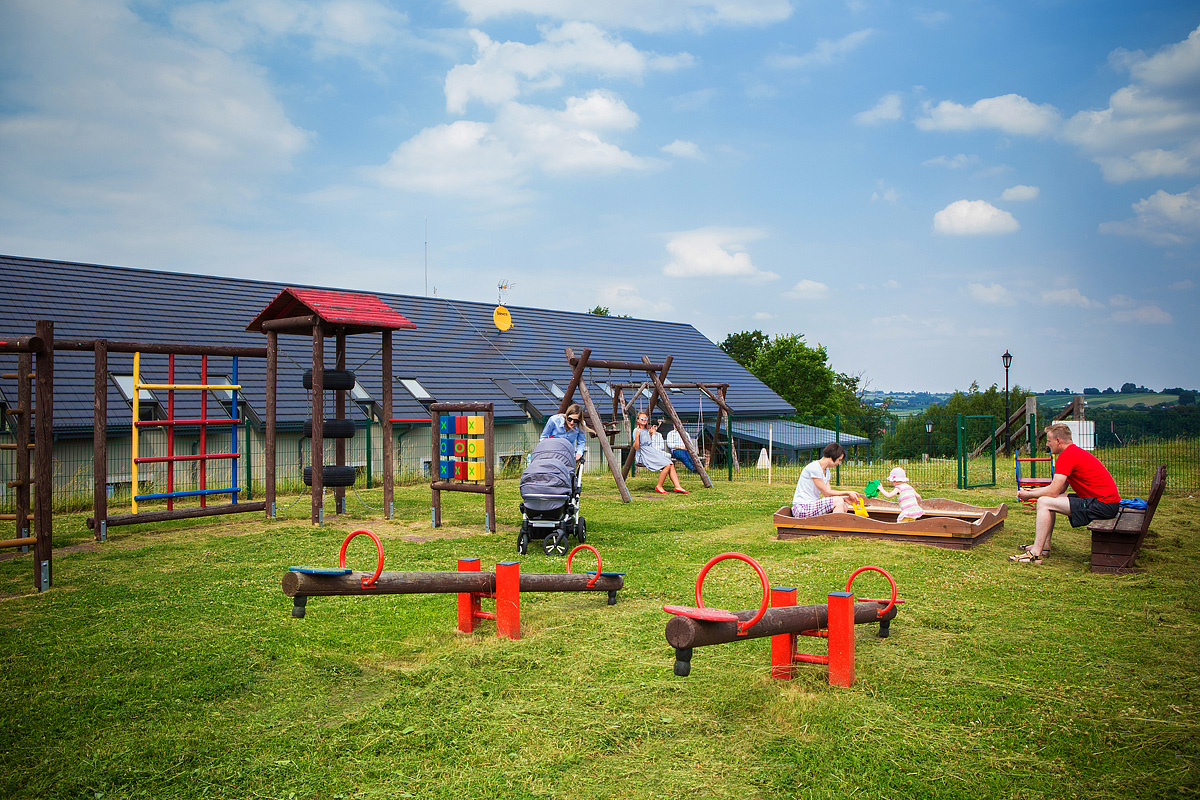 malá sauna* pre 3 osoby a vírivka* (90 minút zadarmo / osobu / pobyt), posilňovňa, ihrisko na volejbal a badminton, stáje a jazdiareň* (nutná rezervácia v mieste)