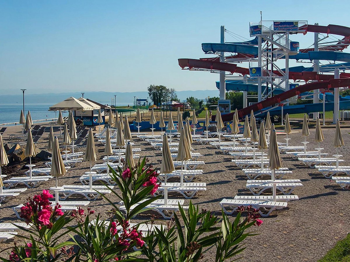 vonkajšie tobogány* pre deti na pláži, lehátka a slnečníky na pláži*, vnútorný bazén s morskou vodou (v júli a auguste uzatvorený), posilňovńa*, wellness centrum Mirta* - saunový svet* (bylinková, fínska, infra sauna, parný kúpeľ, Kneippov chodník), vírivka*, relaxačná miestnosť*, masáže* a kozmetické procedúry*; športové možnosti* - tenis*, minigolf*, piesočné ihrisko*, požičovňa bicyklov*, vodné športy*; (odstávka vnútorného bazéna v termíne: 01.07. – 01.09.2025)