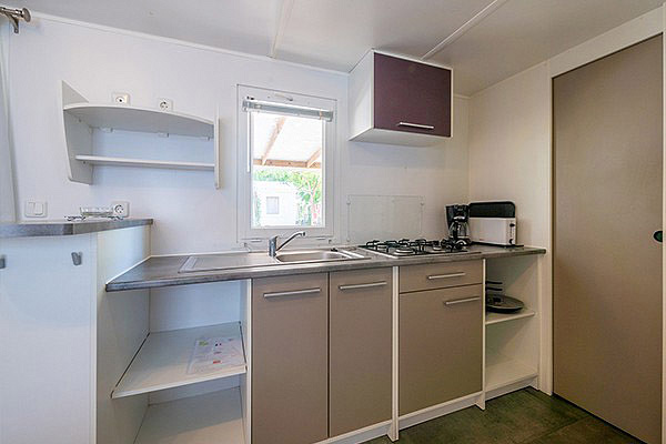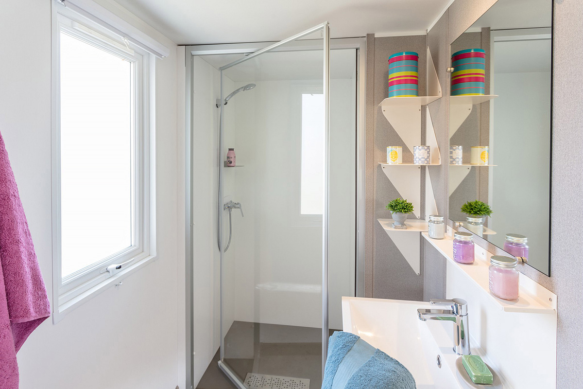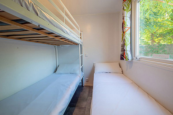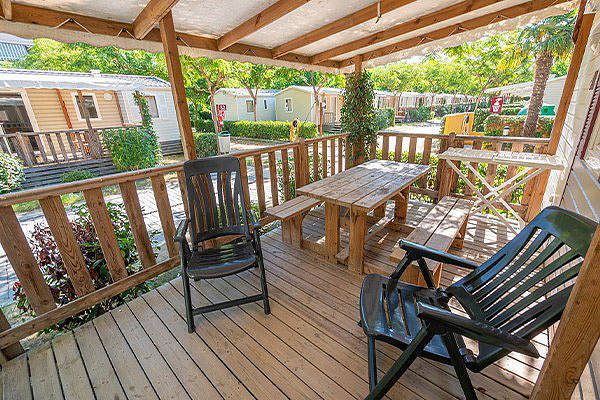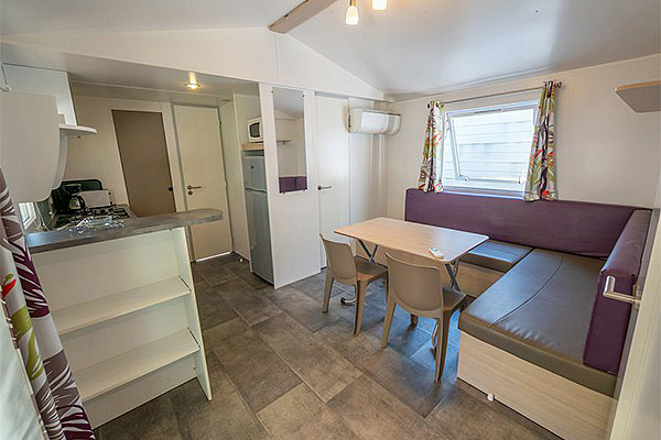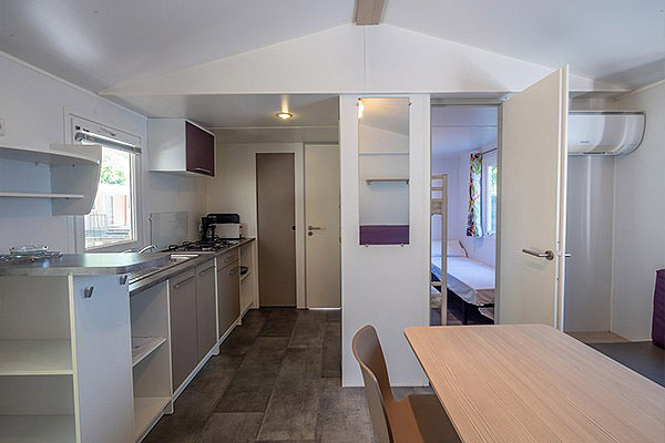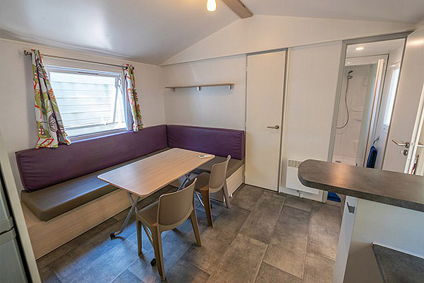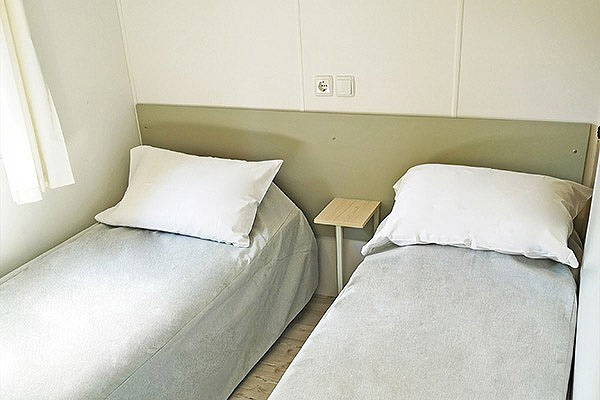 34 m² - spálňa s manželskou posteľou, 2 spálne s 2 samostatnými lôžkami alebo poschodovými posteľami, obytná časť s kuchynským kútom, sociálne zariadenie so sprchou, samostatné WC, čiastočne krytá terasa