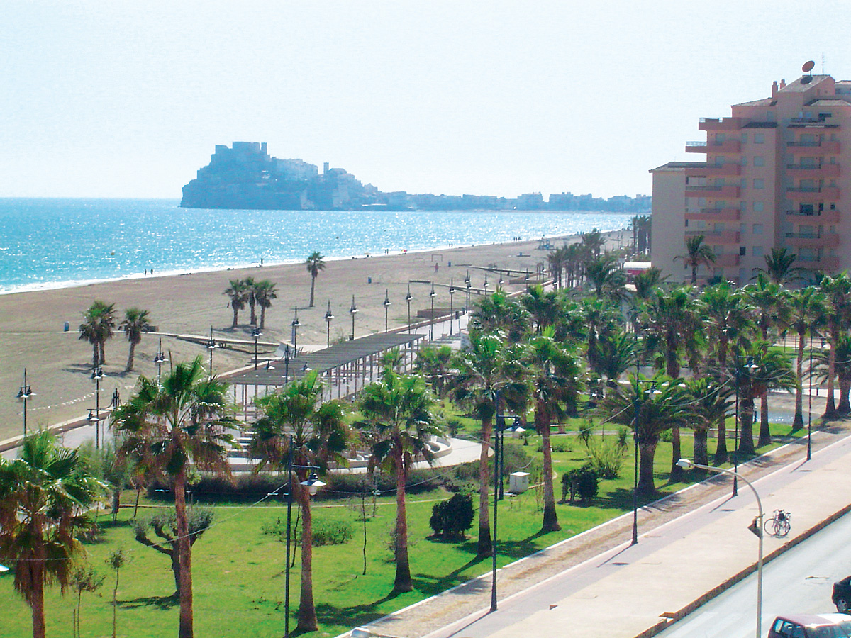 Miestne more je čisté, pri brehu však môže byť zakalené zvíreným pieskom. Po prevažnú väčšinu roka je aj celkom pokojné. Pláže sú tu historickým centrom Peniscola rozdelené na dve charakterovo úplne odlišné časti. 6 kilometrov na sever, až po letovisko Benicarlo, sa tiahne miestami až 100 metrov široká piesočnatá pláž tvorená ako jemným pieskom, spravidla v páse do 5 až 15 metrov od mora, tak aj hrubozrnným pieskom v vzdialenejších miestach od mora. Jemnejší piesok je každoročne na pláž umelo navážený. Vstup do mora je pozvoľný, v miestach terénnymi úpravami rozšírené pláže, potom stupňovitý, nie je teda úplne ideálny pre malé deti a neplavcov. V mori nežijú nebezpečné živočíchy.