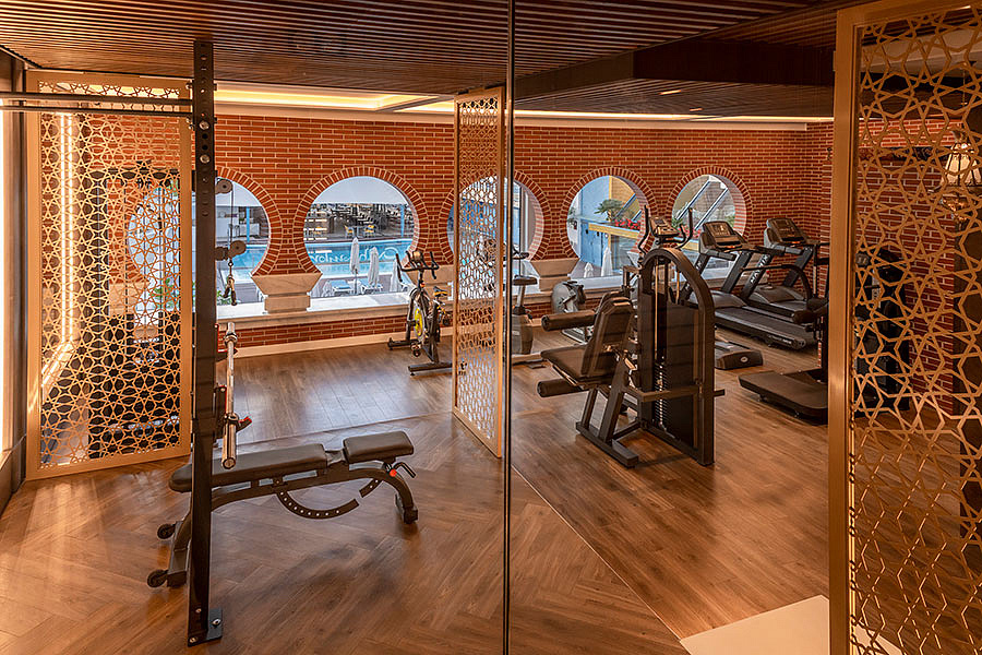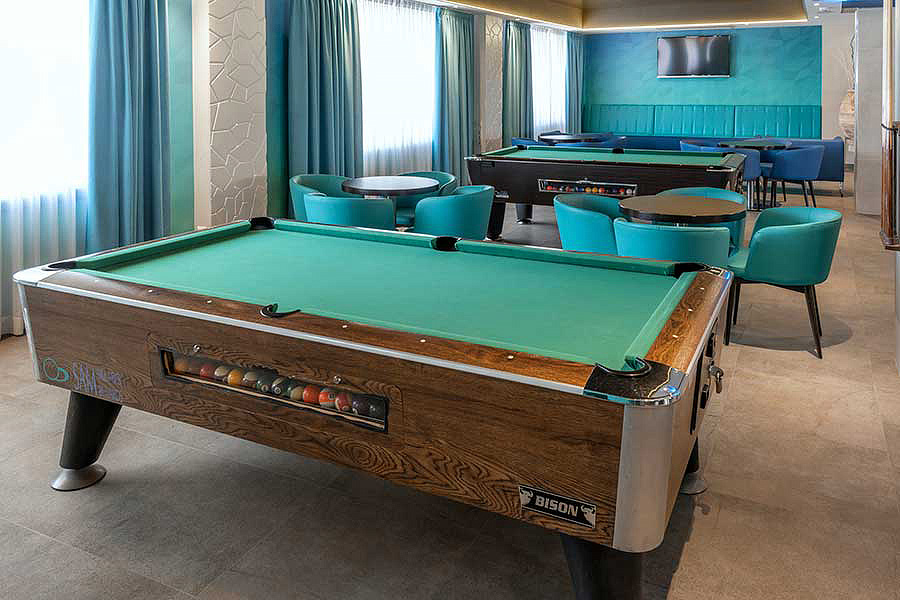bazén s lehátkami a slnečníkmi, bar pri bazéne, detský bazénik, posilňovňa, stolný tenis*, biliard*, solárium*, sauna*