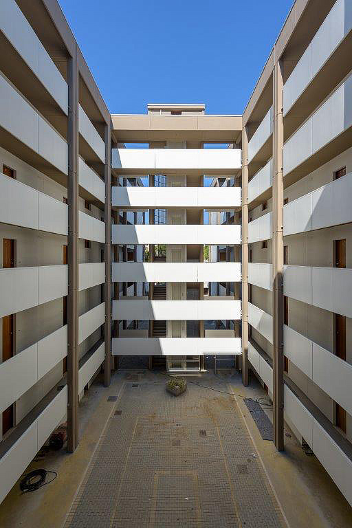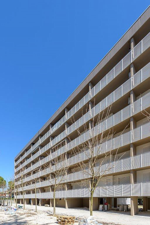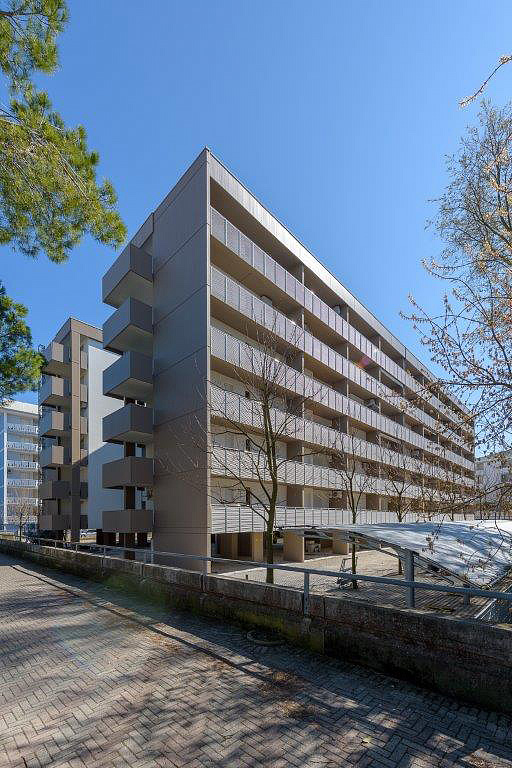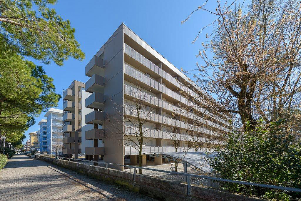 dva prepojené šesťpodlažné apartmánové domy v pokojnej časti Lido dei Pini