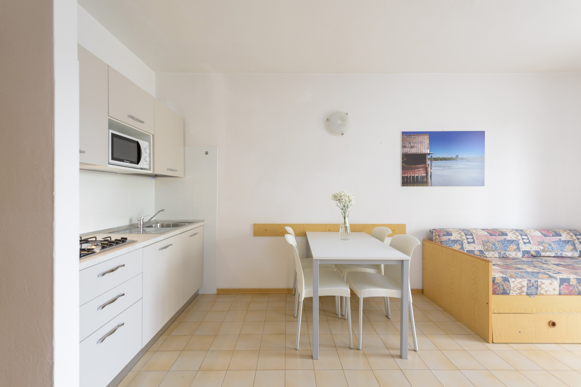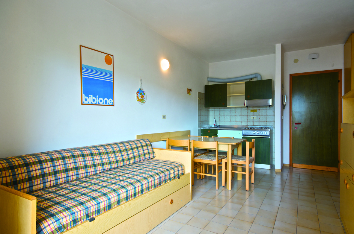 bilo 5 - 30 až 35 m² - 1 spálňa s manželskou posteľou a 1 samostatným lôžkom, obývacia izba s kuchynským kútom a rozkladacou pohovkou pre 2 osoby (možnosť aj typ "zásuvka"), sociálne zariadenie so sprchou, balkón