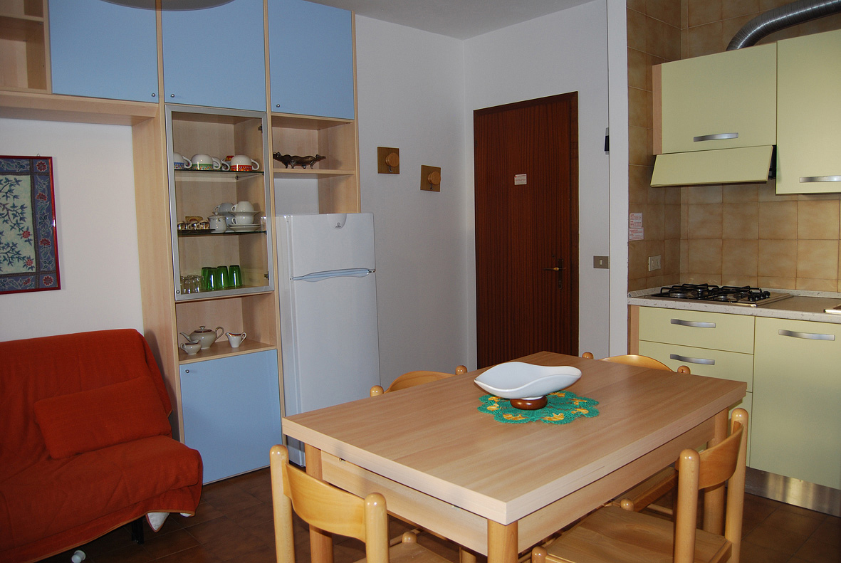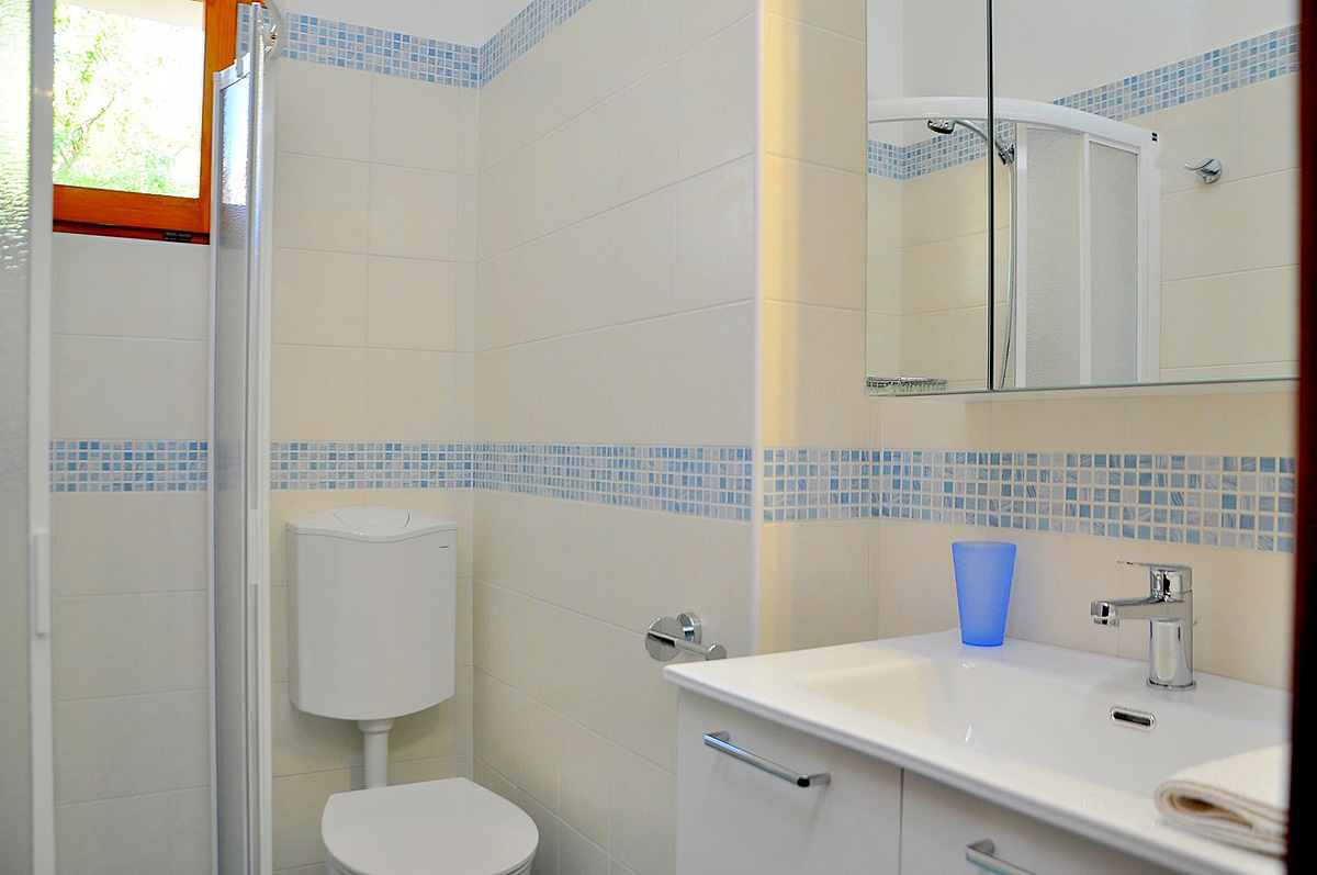 45 m² - 1 spálňa s manželskou posteľou, 1 spálňa s poschodovou posteľou, obývacia izba s kuchynským kútom a rozkladacím gaučom pre 2 osoby (možný typ "zásuvka"), sociálne zariadenie so sprchou, balkón; typ trilo 6° a trilo 6AC so sprchovým boxom