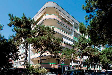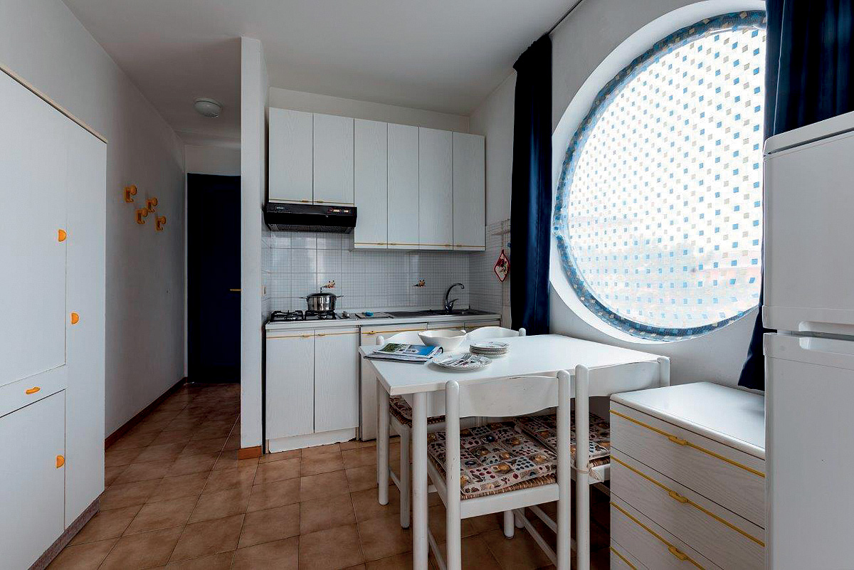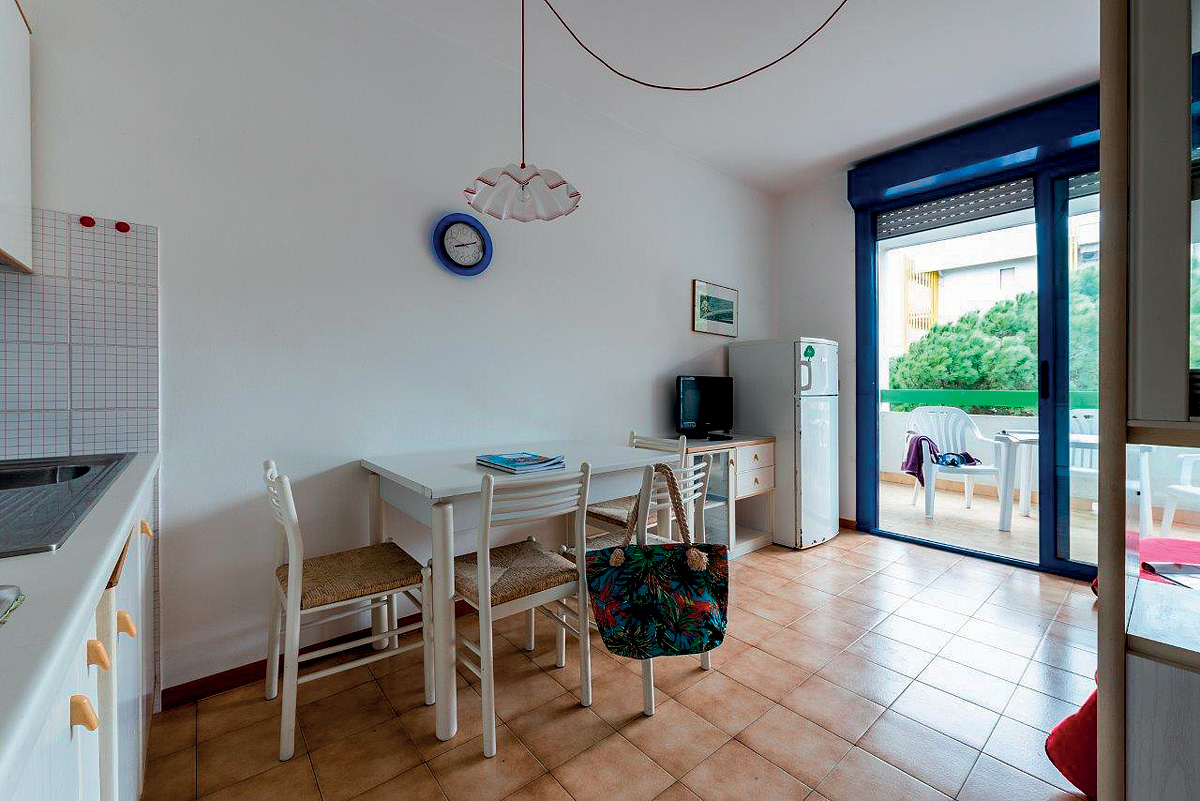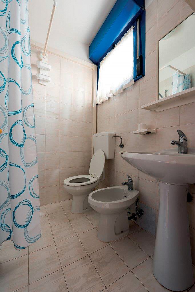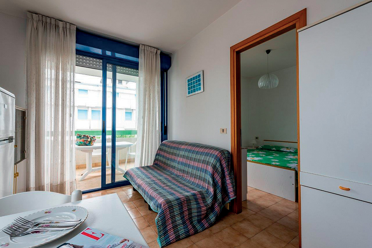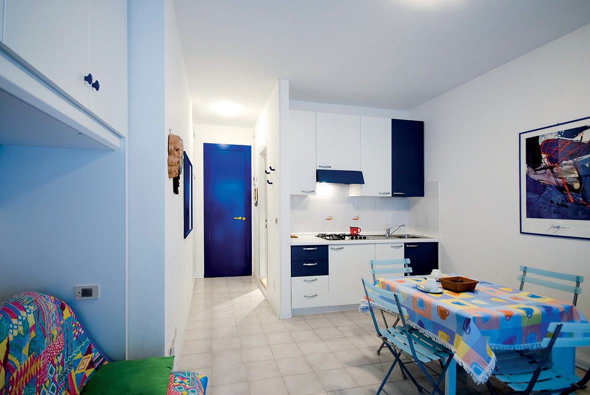45 m² - 1 spálňa s manželskou posteľou, 1 spálňa s 2 samostatnými lôžkami alebo poschodovou posteľou alebo 1 samostatným lôžkom a poschodovou posteľou, obývacia izba s kuchynským kútom a rozkladacím gaučom pre 2 osoby, sociálne zariadenie so sprchou, balkón; apartmány označené trilo 6/7N sú zrekonštruované