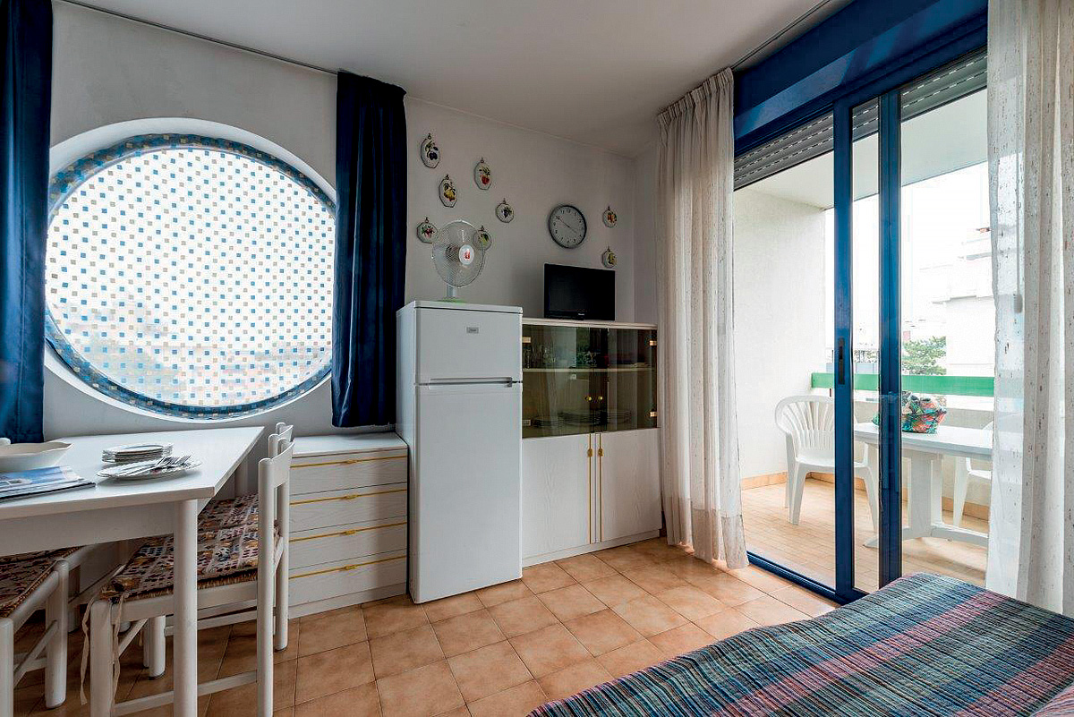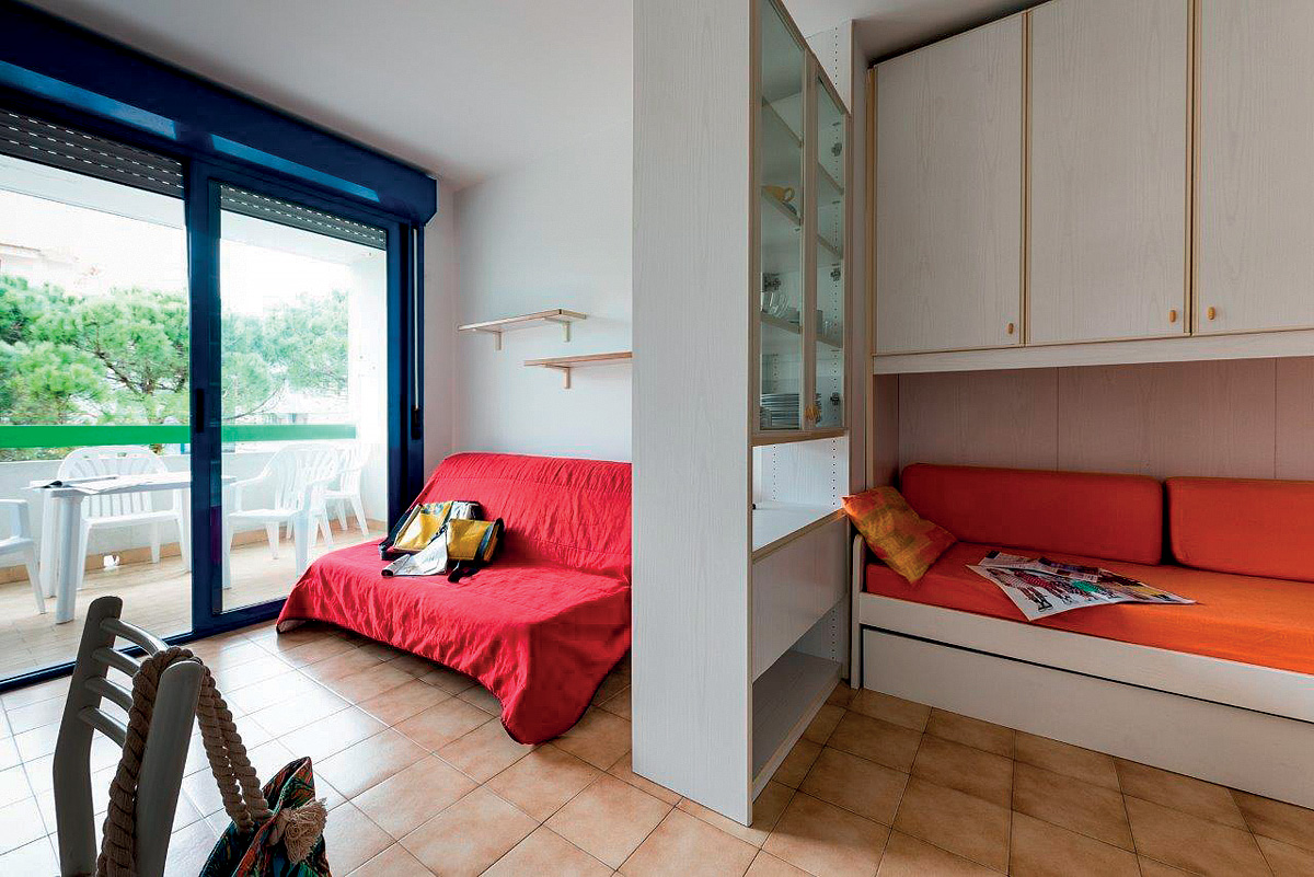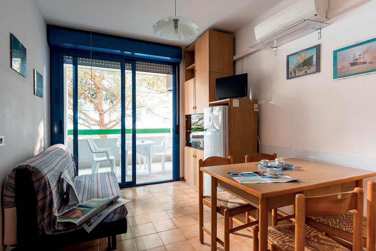 23 m² - obývacia izba s kuchynským kútom, rozkladacím gaučom (možný aj typ "zásuvka") pre 2 osoby a prípadne ďalším rozkladacím gaučom (možný aj typ "zásuvka") pre 1 či 2 osoby alebo vyklápacou poschodovou posteľou, sociálne zariadenie so sprchou, balkón; apartmány označené mono 4N sú zrekonštruované