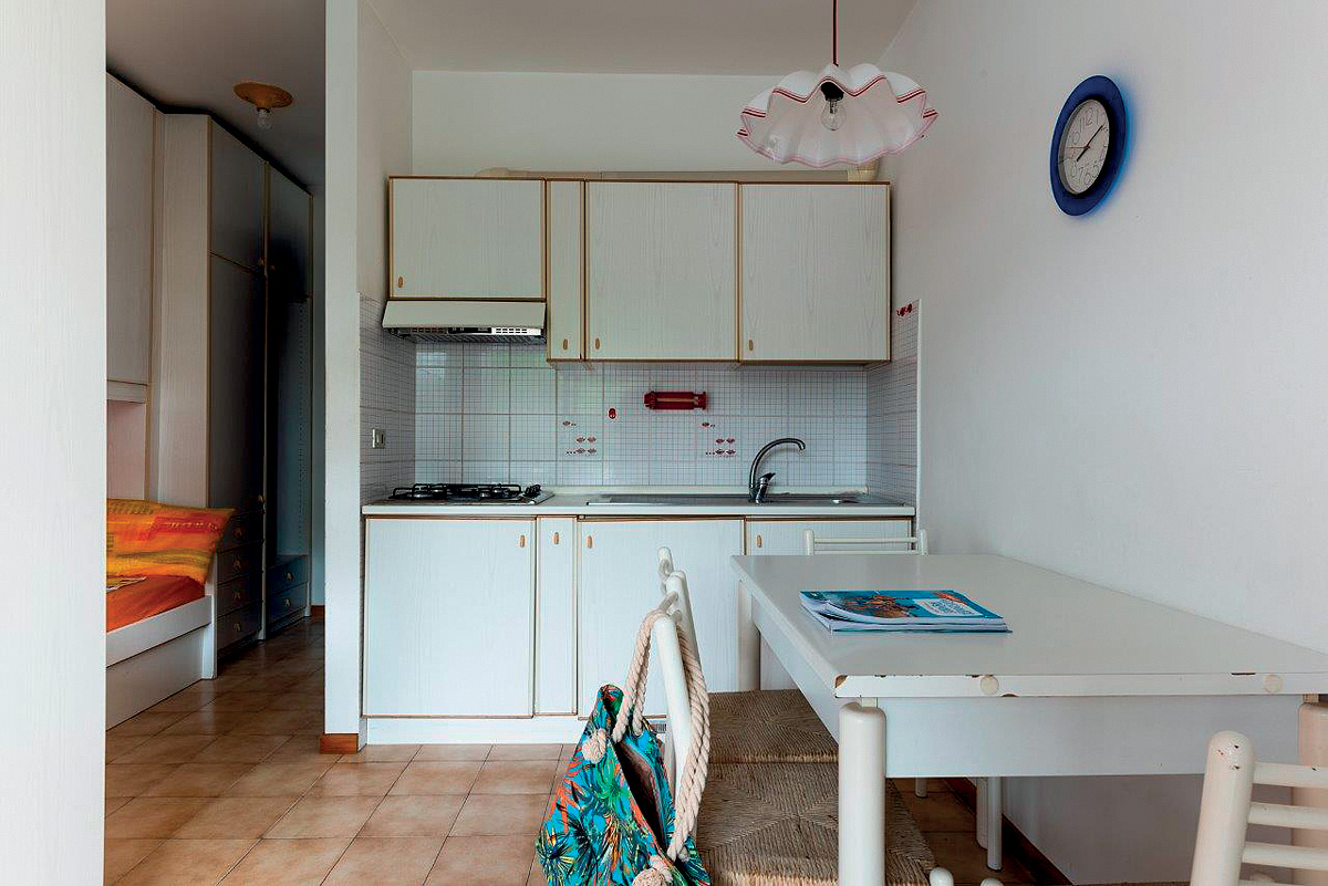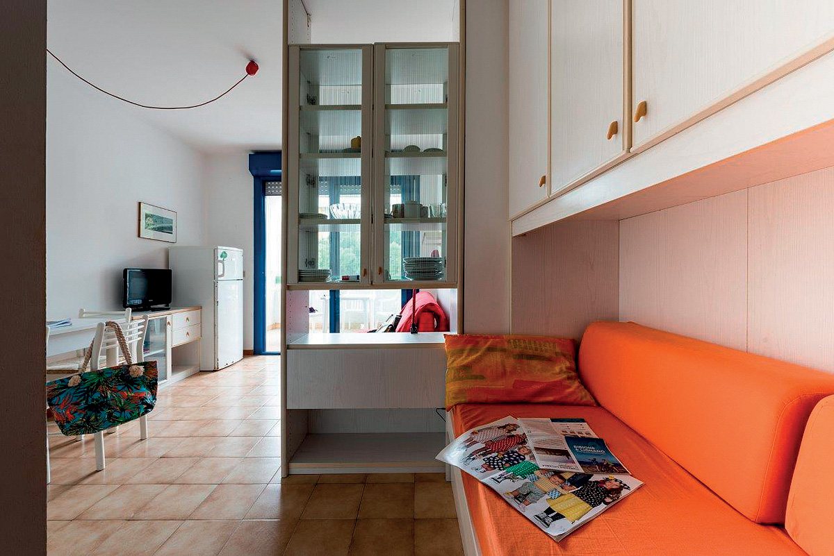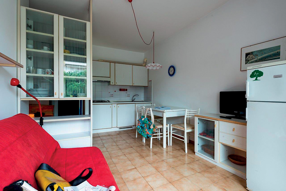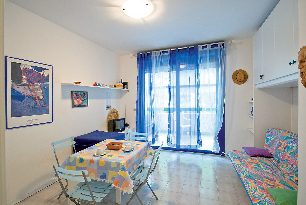 23 m² - obývacia izba s kuchynským kútom, rozkladacím gaučom (možný aj typ "zásuvka") pre 2 osoby a prípadne ďalším rozkladacím gaučom (možný aj typ "zásuvka") pre 1 či 2 osoby alebo vyklápacou poschodovou posteľou, sociálne zariadenie so sprchou, balkón; apartmány označené mono 4N sú zrekonštruované