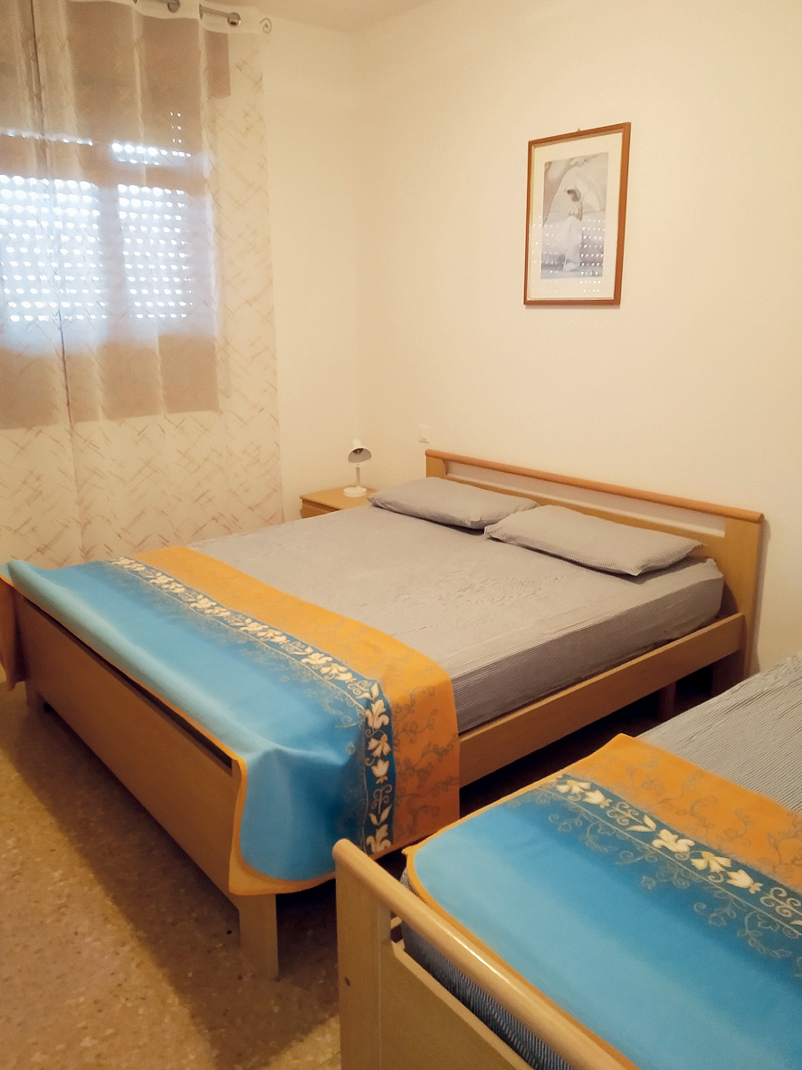 45 až 50 m² - 1 spálňa s manželskou posteľou a 1 samostatným lôžkom, 1 spálňa s 2 samostatnými lôžkami, obývacia izba s kuchynským kútom a rozkladacím gaučom pre 1 osobu, sociálne zariadenie so sprchou, terasa alebo balkón
