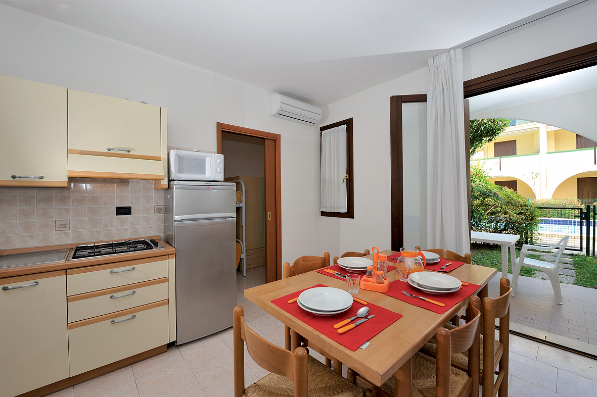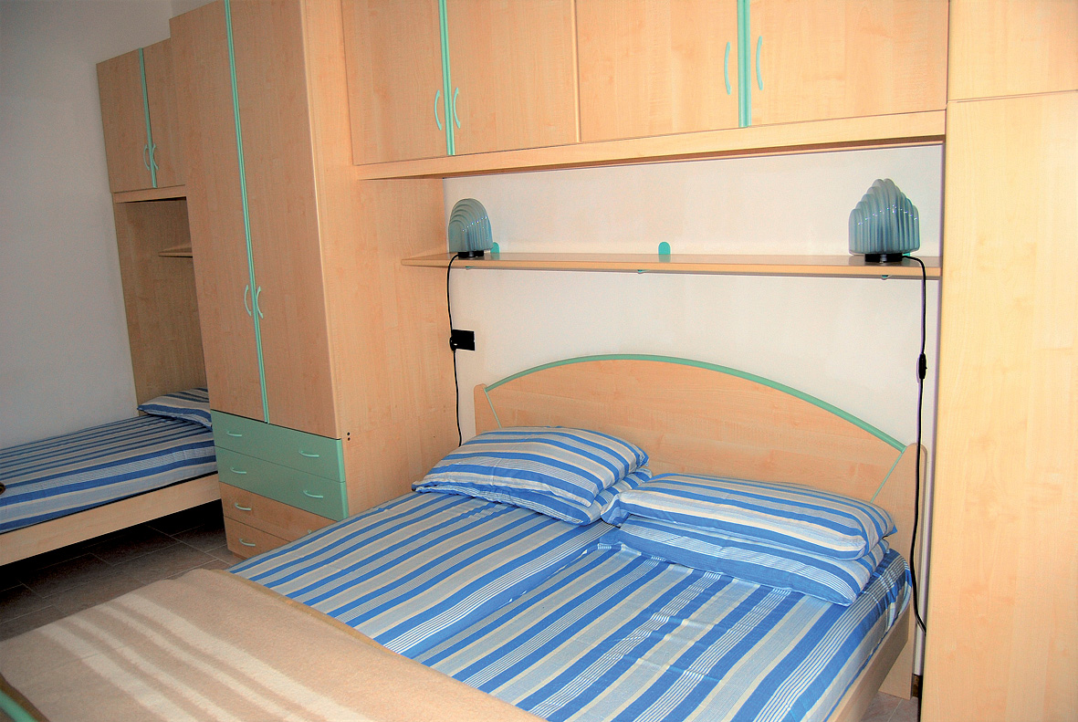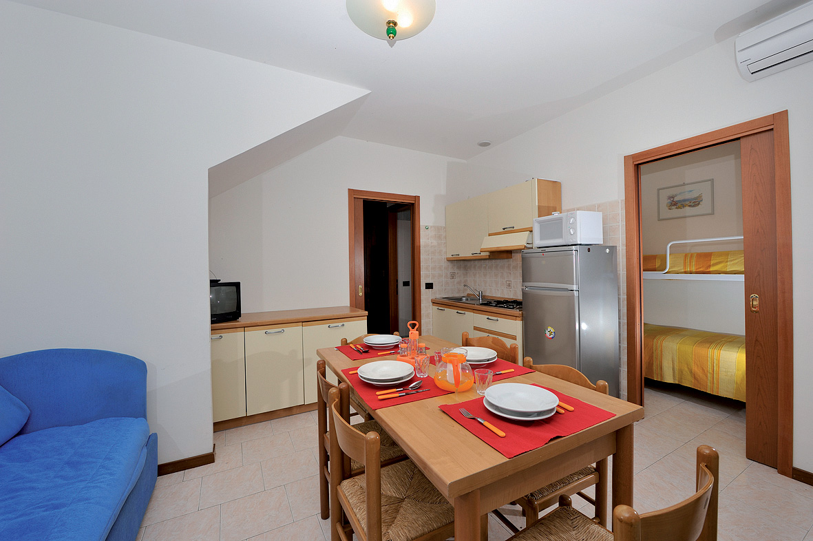 bilo 5 / bilo 5/6AC - 30 až 35 m² - 1 spálňa s manželskou posteľou a prípadne 1 samostatným lôžkom či poschodovou posteľou, obývacia izba s kuchynským kútom a rozkladacím gaučom (možný aj typ "zásuvka") pre 2 osoby, sociálne zariadenie so sprchou, balkón alebo predzáhradka spravidla s terasou