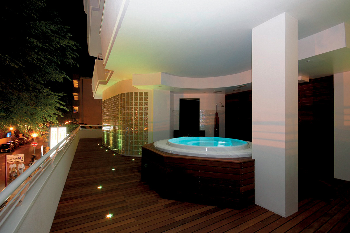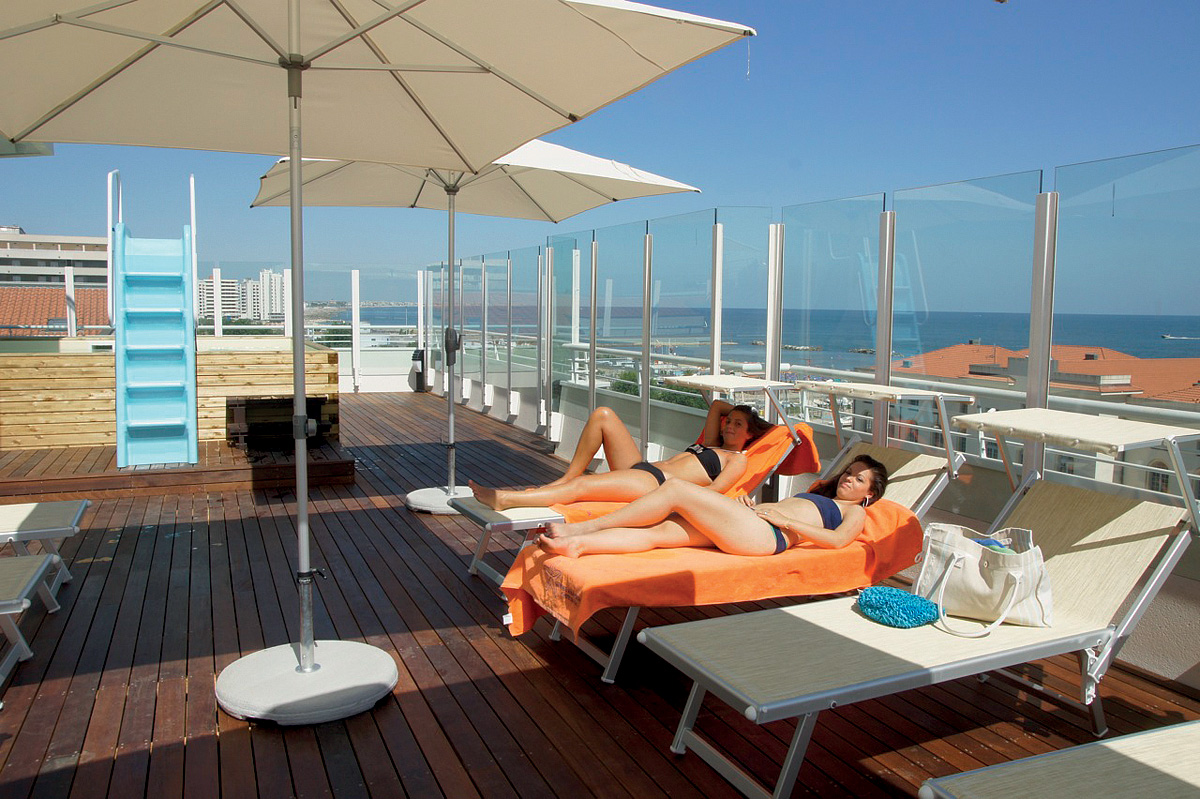 malý strešný bazén (približne od konca mája do polovice septembra) so slnečníkmi* a ležadlami*, wellness centrum* (vírivka, fínska sauna, zážitkové sprchy, parný kúpeľ, relaxačná zóna), požičovňa bicyklov, plážový servis (1 slnečník a 2 ležadlá / izba v cene, na pláži vzdialenej 500 m od hotela)
