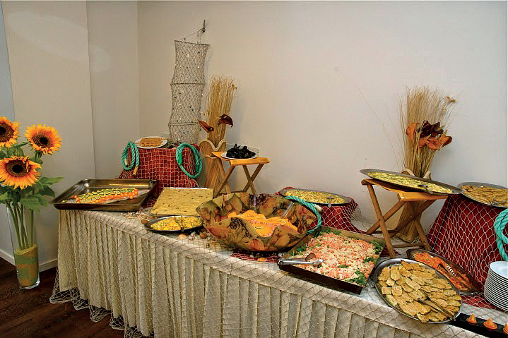 formou bufetu, neobmedzené množstvo čapovanej vody a vína; ostatné nápoje za poplatok