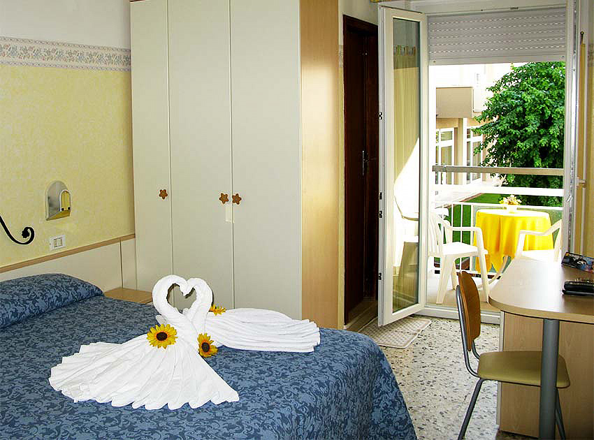 izba s manželskou posteľou či 2 samostatnými lôžkami, sociálne zariadenie so sprchou bez závesu, balkón; 3. a 4. lôžko formou prístelky či poschodovej postele