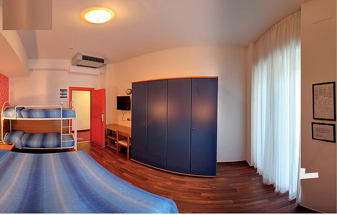 izba s manželskou posteľou alebo 2 samostatnými lôžkami, sociálne zariadenie so sprchou, malý balkón či francúzske okno; 3. a 4. lôžko formou poschodovej postele či atypického gauča rozkladacieho na poschodovú posteľ pre deti do nedovŕšených 15 rokov