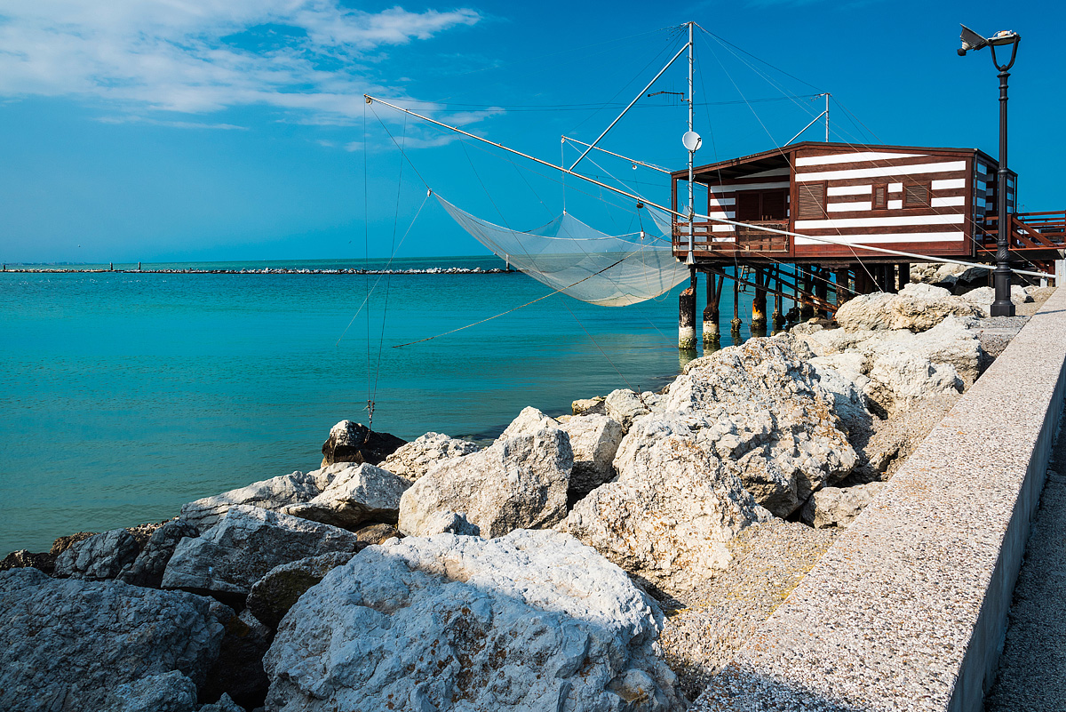 ,Pobrežná krajina je tu úplne plochá, ako obvykle na celom úseku severného Jadranu medzi Benátkami a Cattolicou.