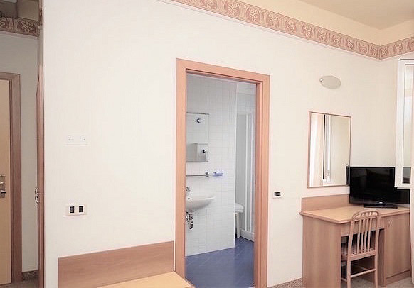 izba s manželskou posteľou či 2 samostatnými lôžkami, sociálne zariadenie so sprchou, malý balkón bez výhľadu na more