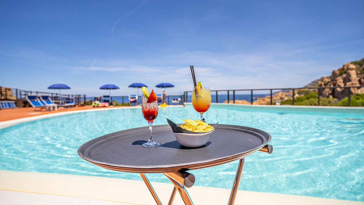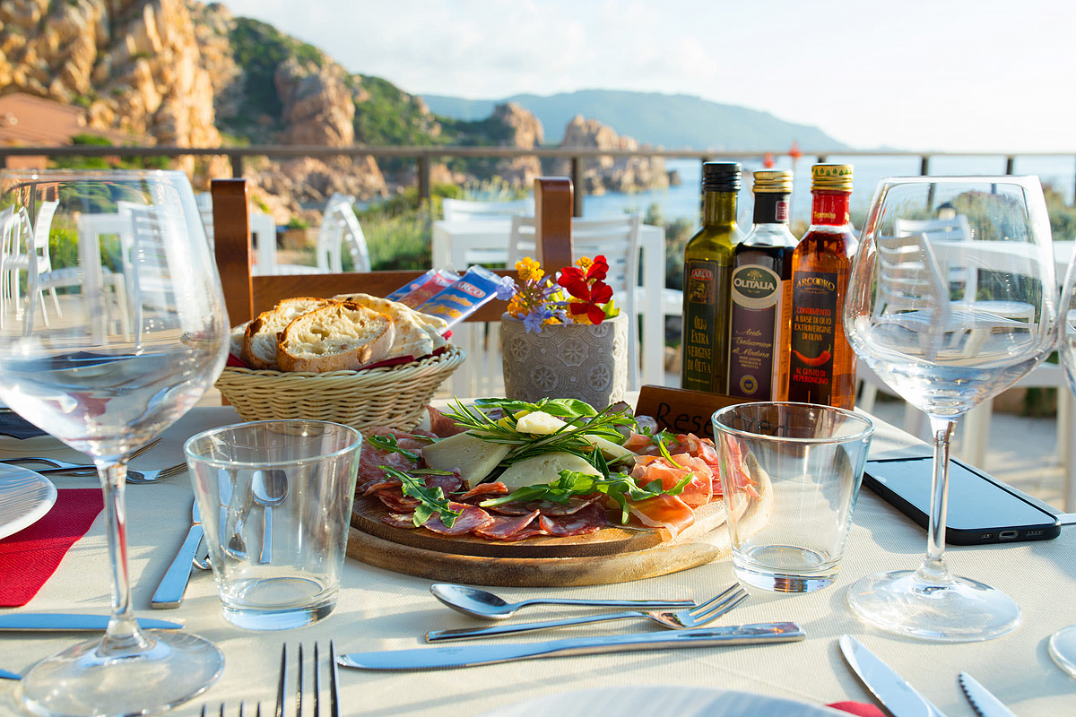 servírované menu s výberom z 2 teplých alebo studených predjedál, 2 hlavných jedál, prílohy, dezert; nápoje za poplatok, v prípade tematických večerov potom aj večera zameraná na ryby, sardínsku kuchyňu alebo iné podľa šéfkuchára