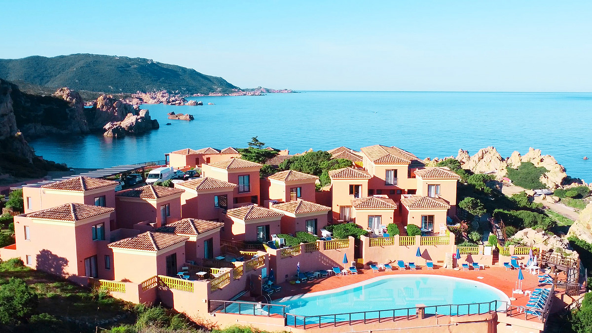 hotelový komplex v typickom sardínskom štýle, kde sú umiestnené v hlavnej budove a radových dvojpodlažných vilkách