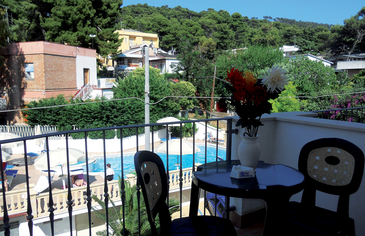 menší hotel s bazénom v pokojnom letovisku